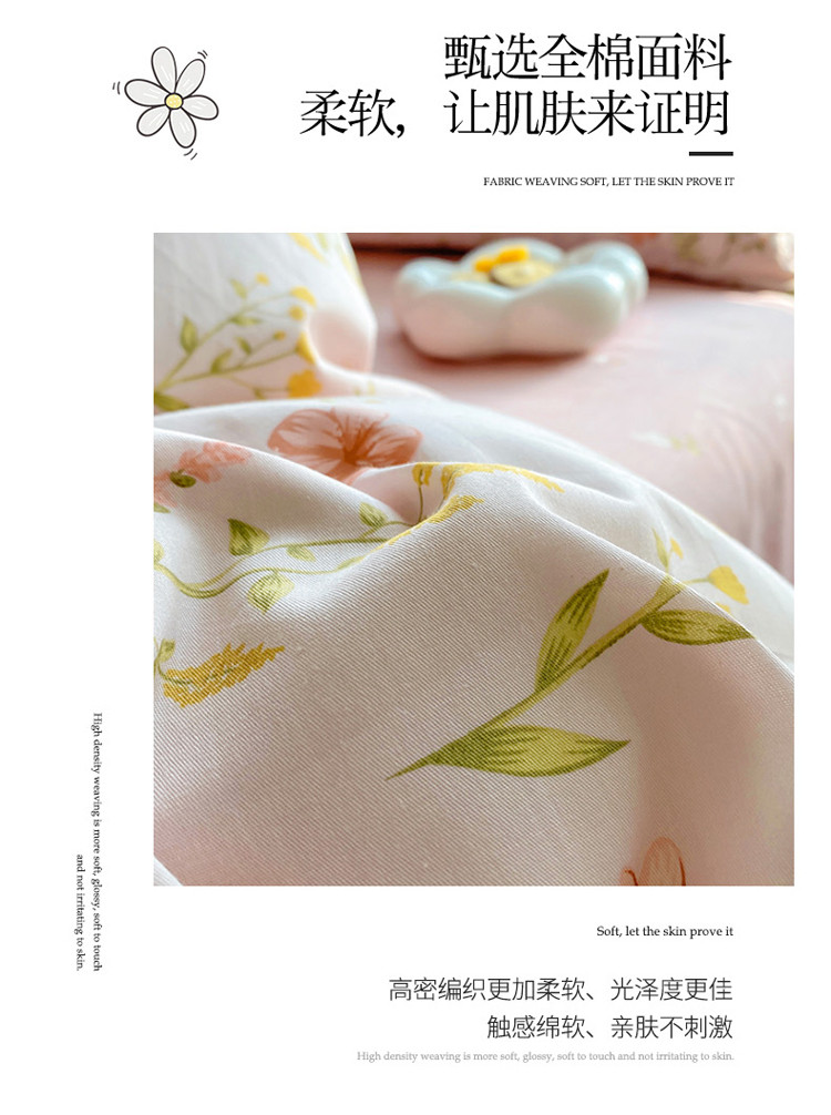商品名称:田野 2022新13372全棉印花小清新四件套纯棉床笠三件套 蔓春