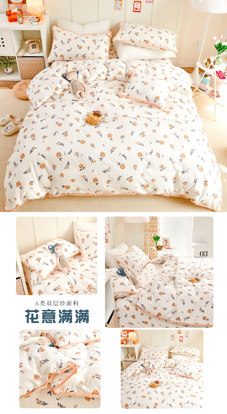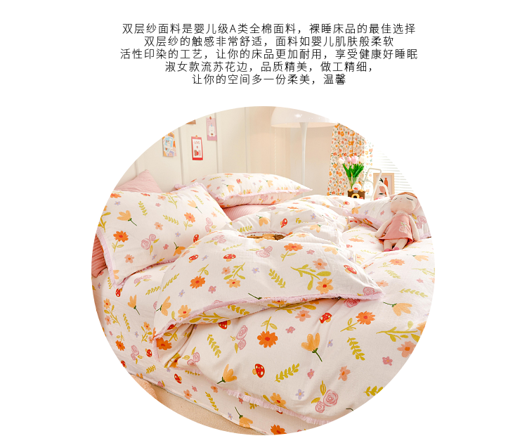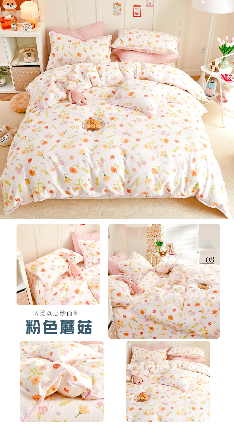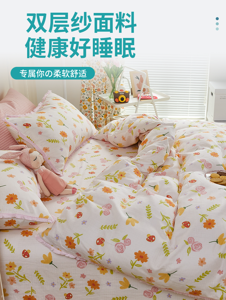 (总)亲亲公主 2025新款小清新碎花韩版花边双层纱四件套