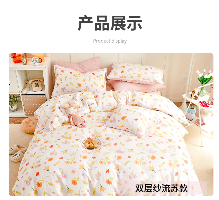 商品名称:(总)亲亲公主 2025新款小清新碎花韩版花边双层纱四件套