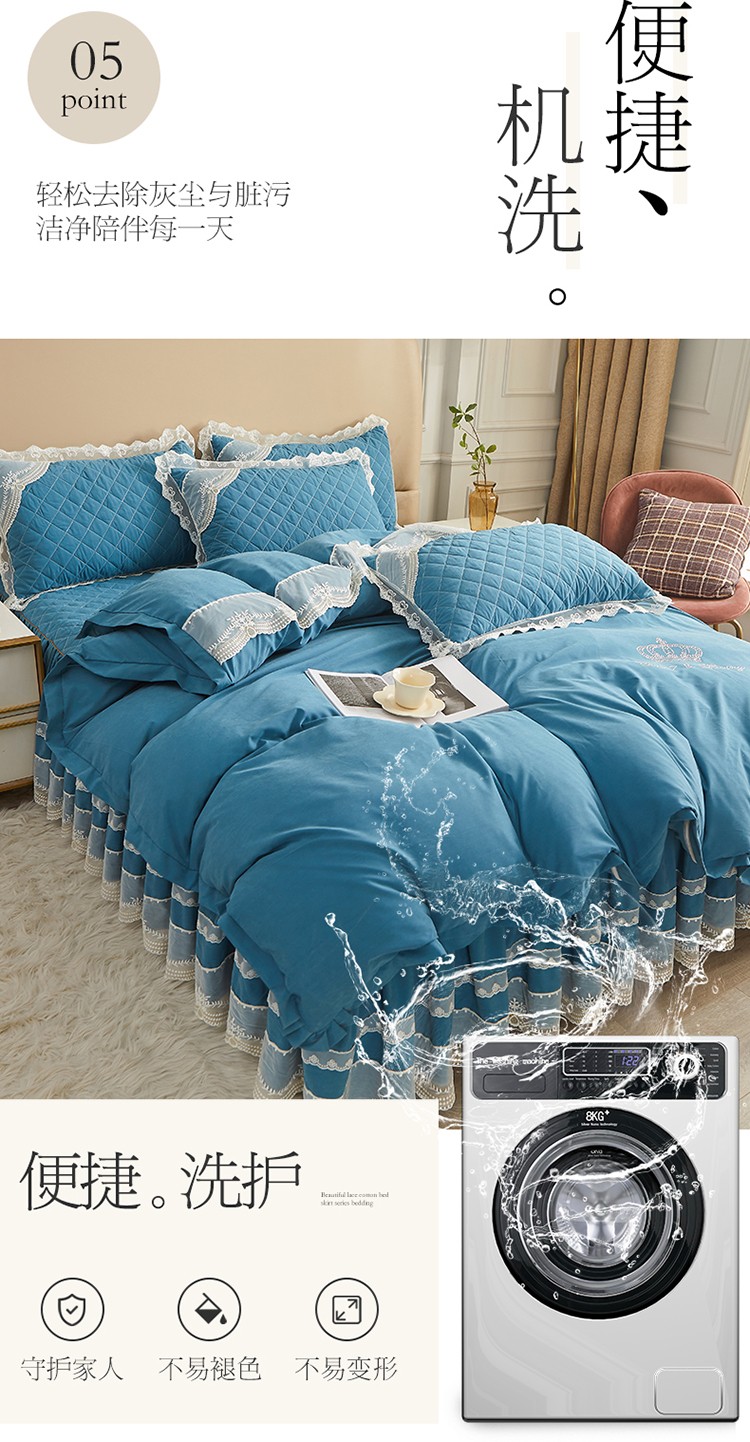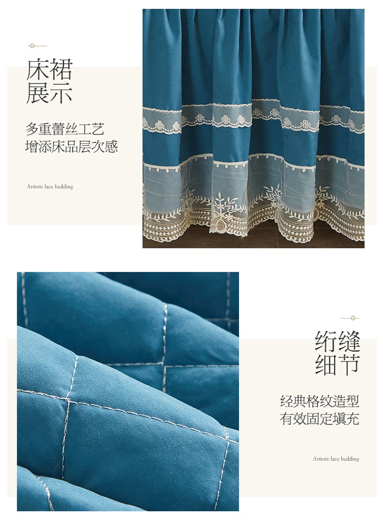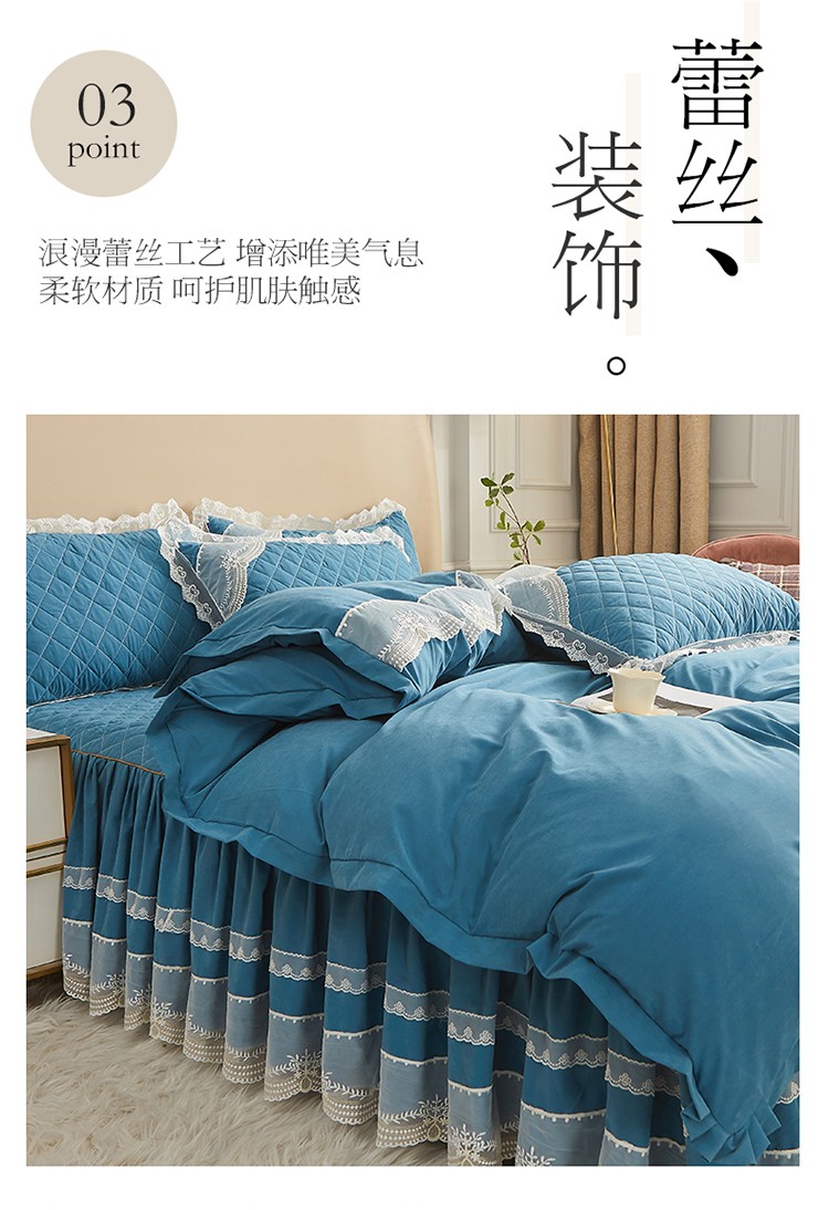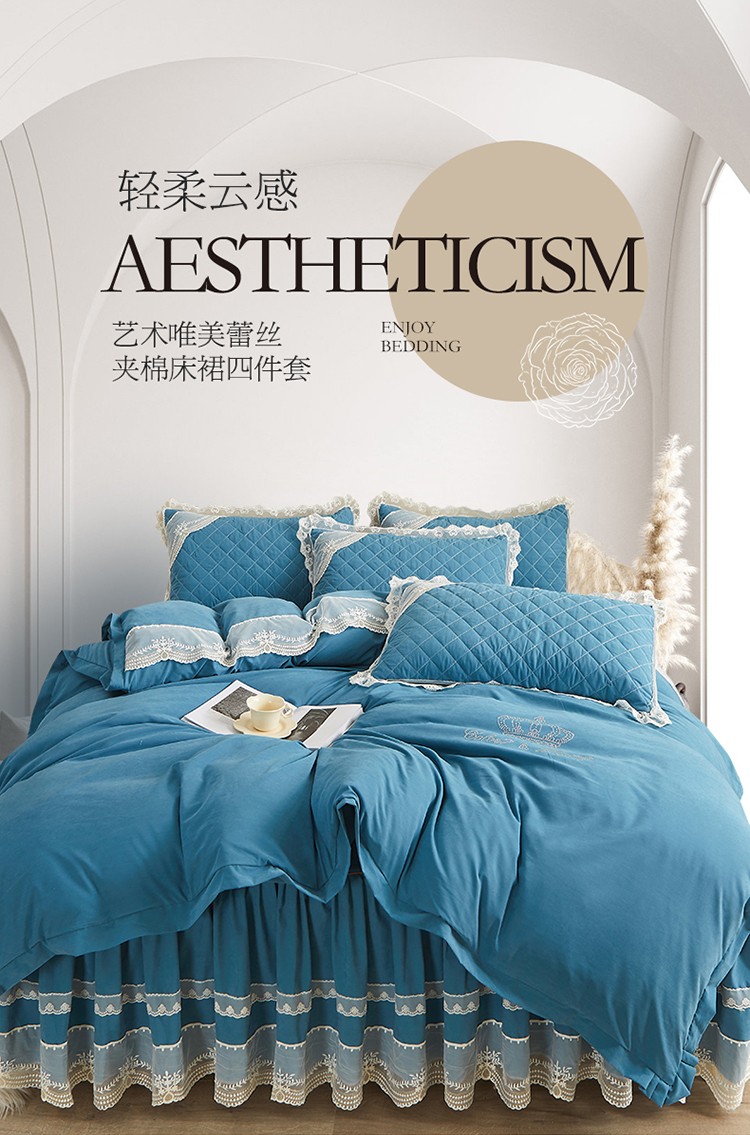 商品名称:网红馆 2025新款唯美蕾丝夹棉床裙四件套婉约佳人 海贝兰