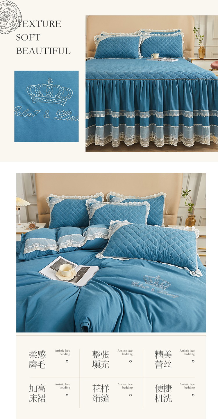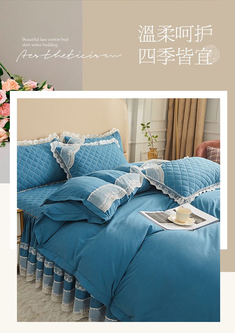 网红馆 2025新款唯美蕾丝夹棉床裙四件套婉约佳人 海贝兰
