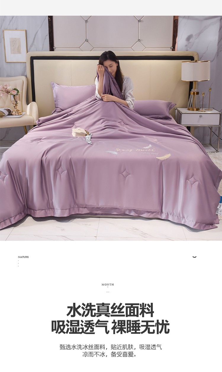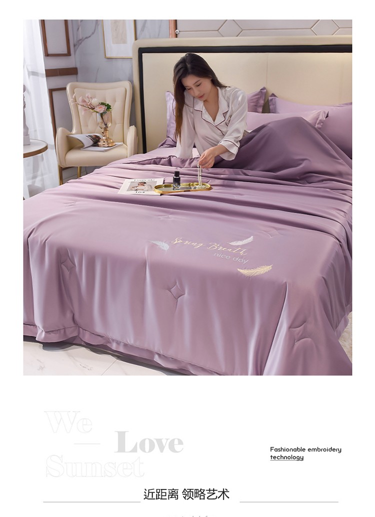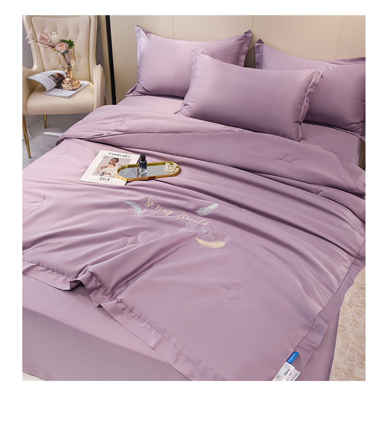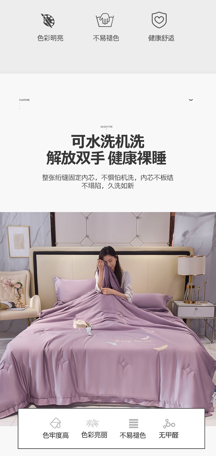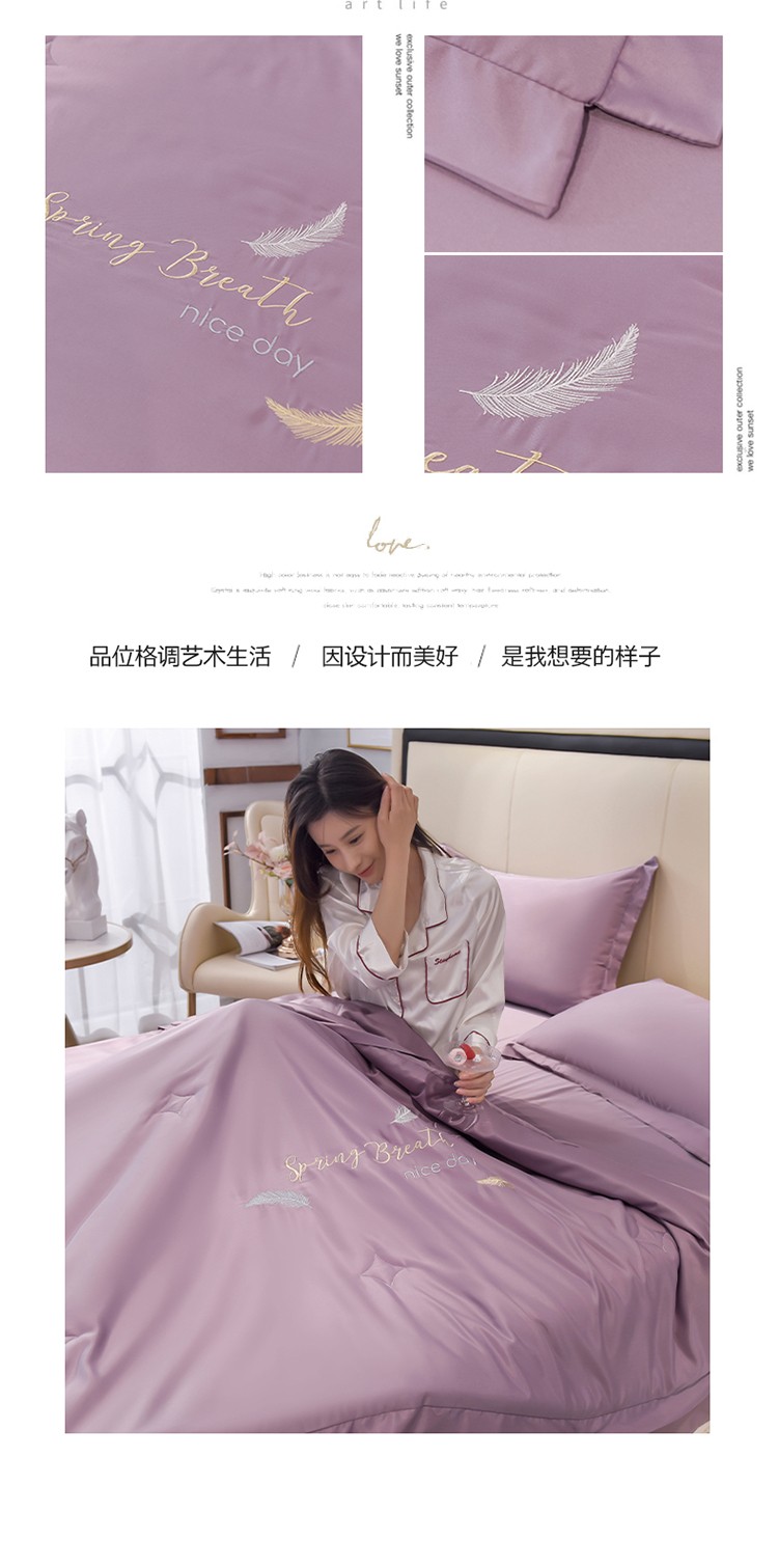 商品名称:塔塔 2025轻奢冰雪丝包边羽毛刺绣大豆夏被 包边款-冰月紫