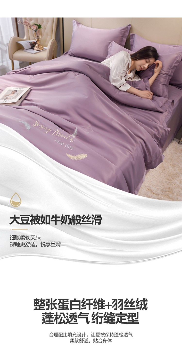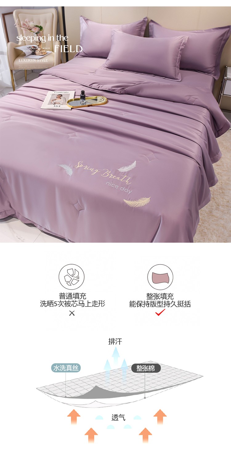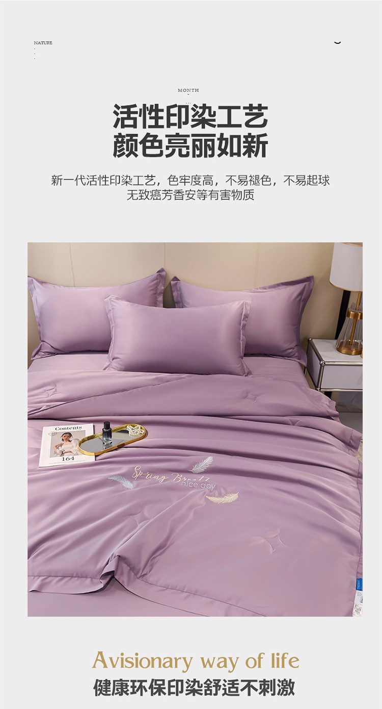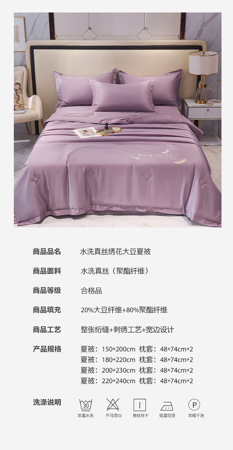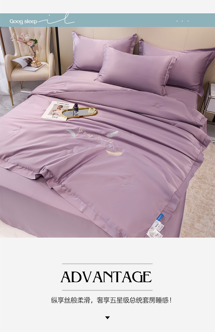 商品名称:塔塔 2025轻奢冰雪丝包边羽毛刺绣大豆夏被 包边款-冰月紫