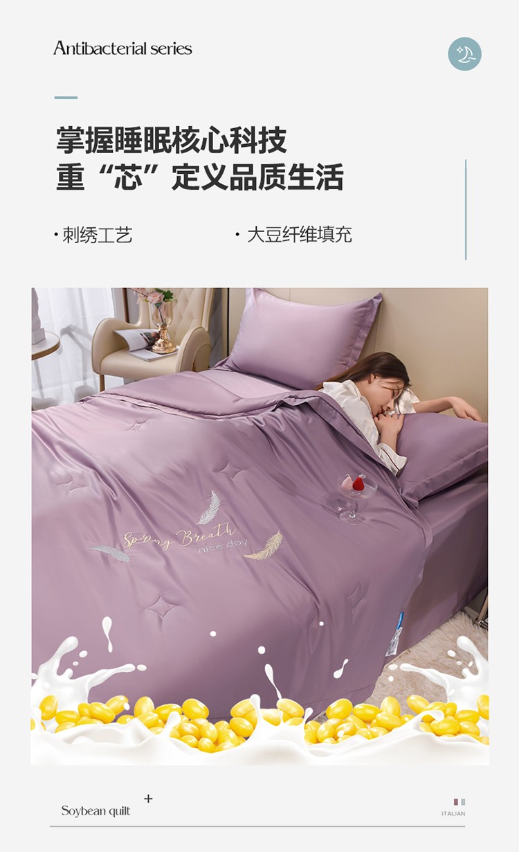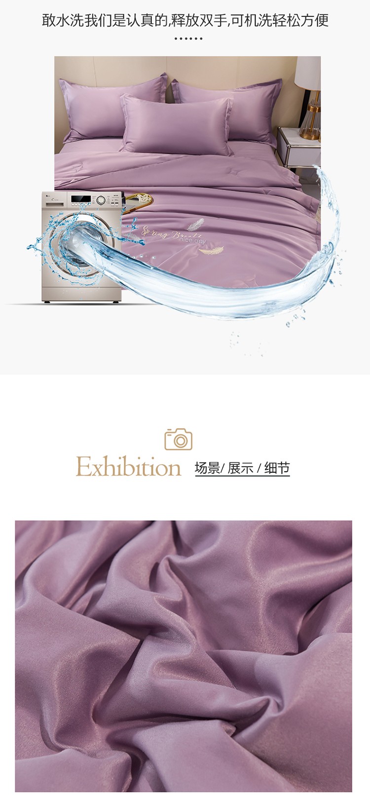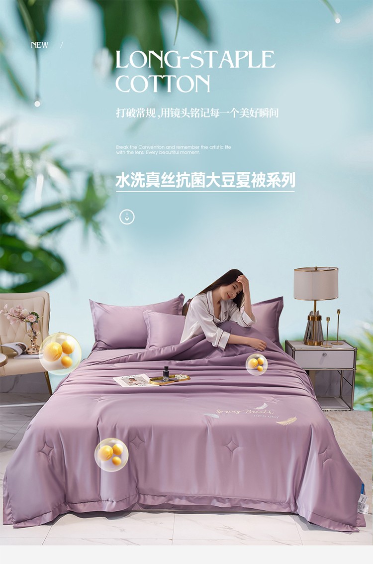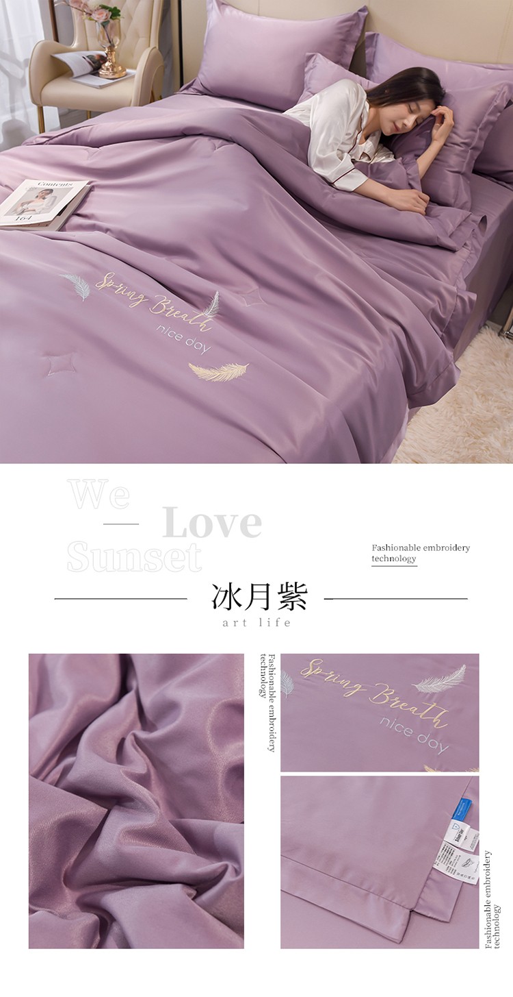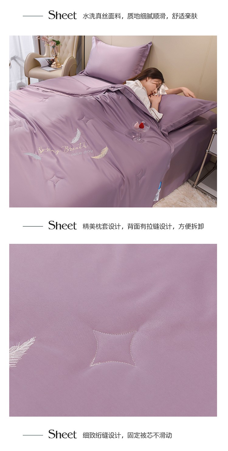 商品名称:塔塔 2025轻奢冰雪丝包边羽毛刺绣大豆夏被 包边款-冰月紫