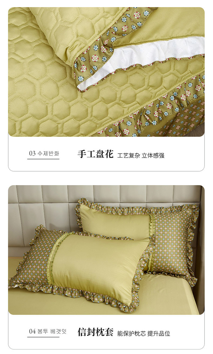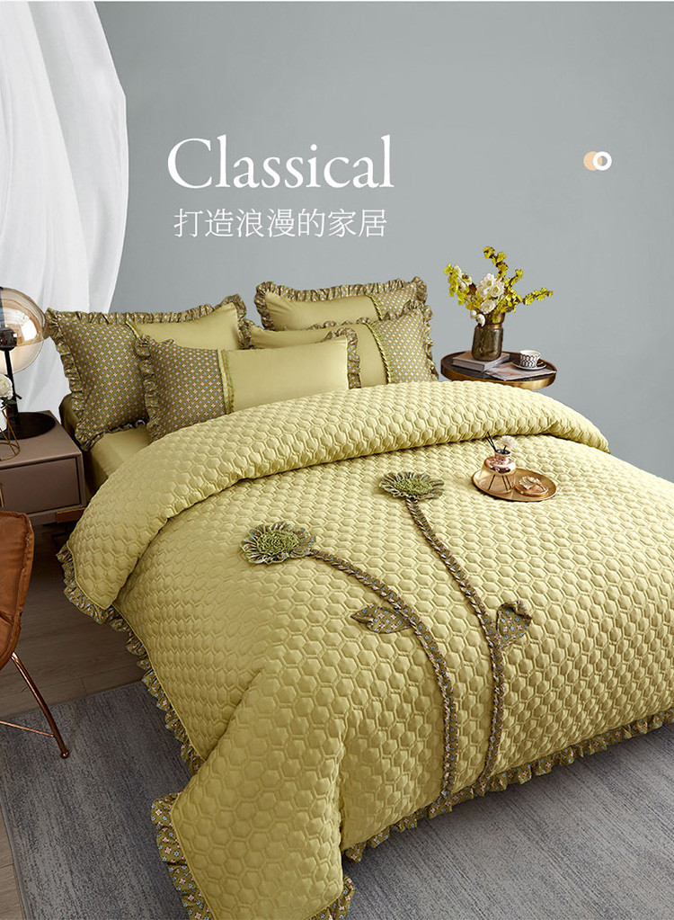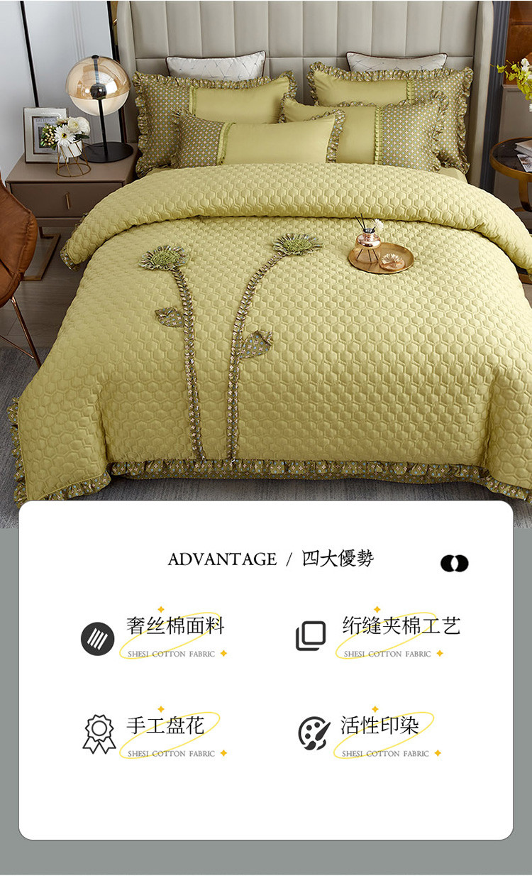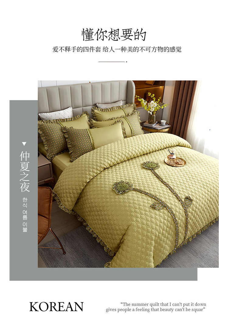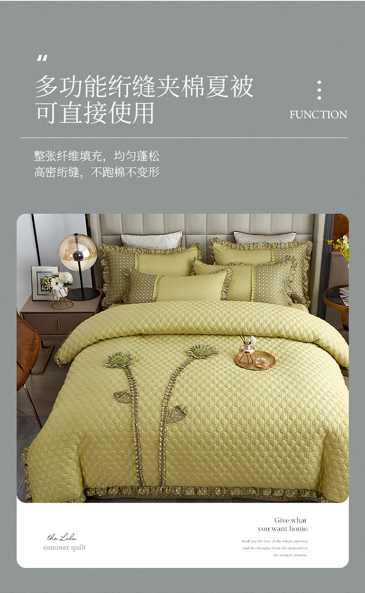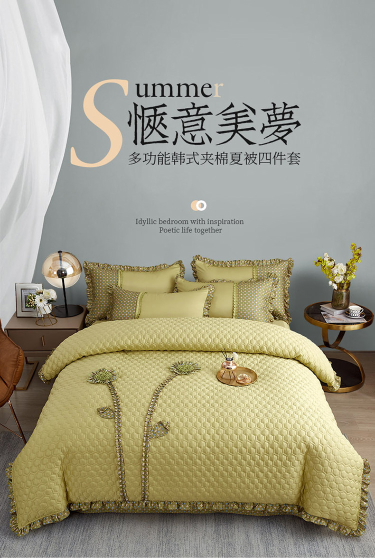 兴美佳 2022新款韩式盘花夹棉夏被四件套 柳绿