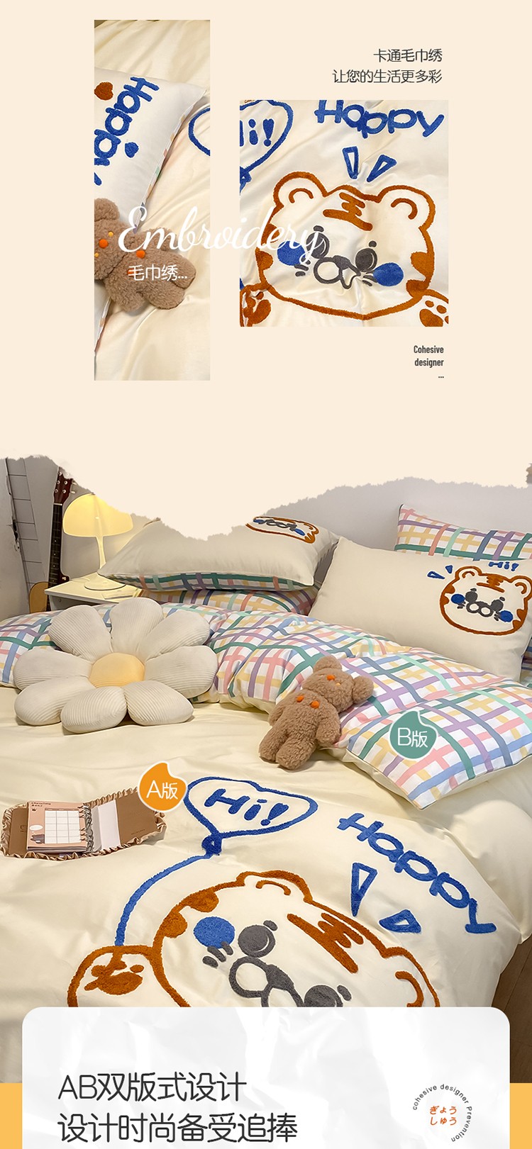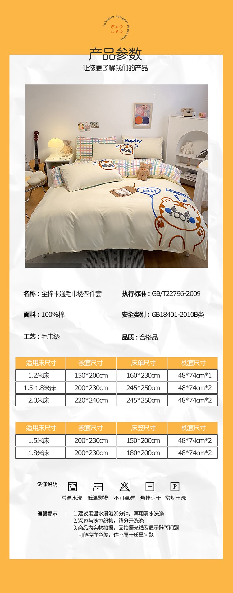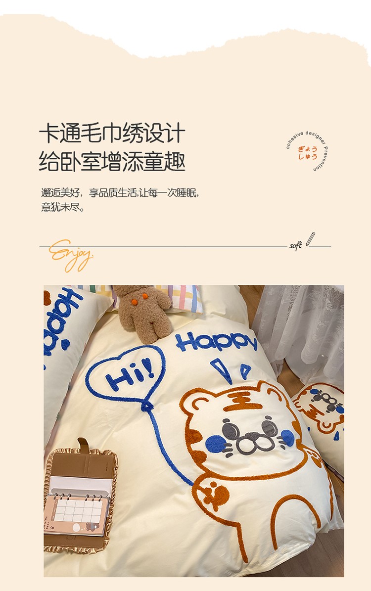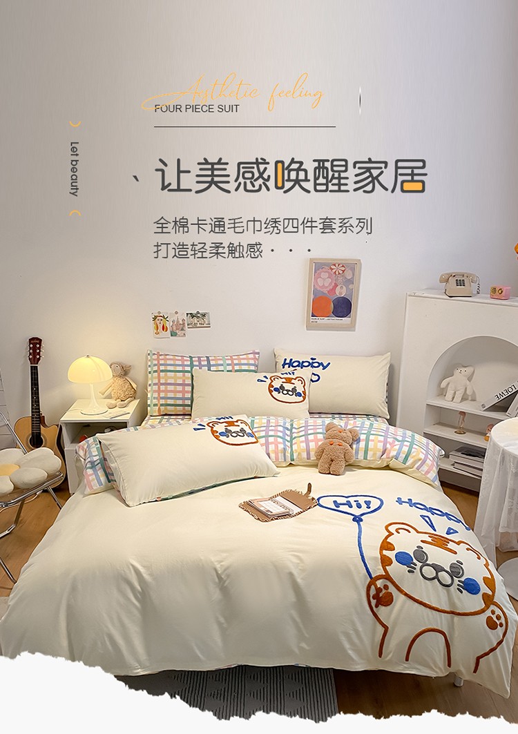 当前位置: 91家纺网 > 商品网购 > 床品套件 > 四件套 > 全棉普通四件套 > 澳梵 2022新款全棉大版卡通毛巾绣绣花四件套 虎虎