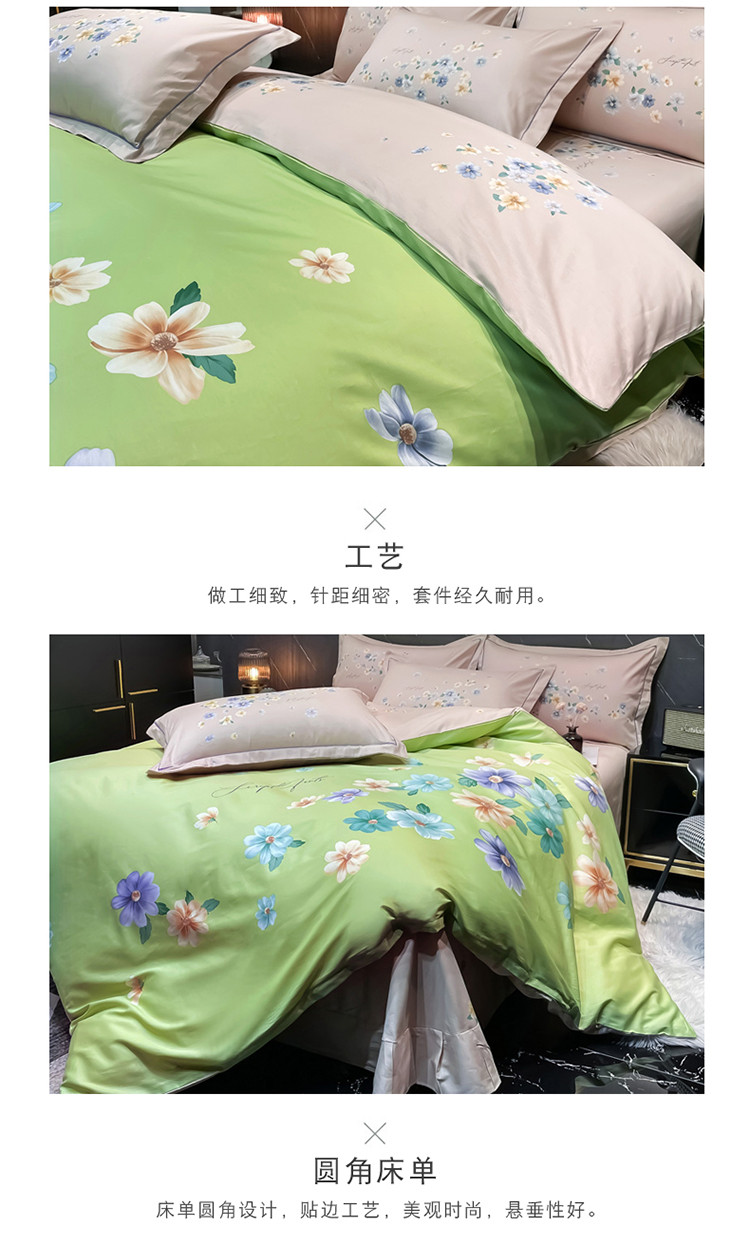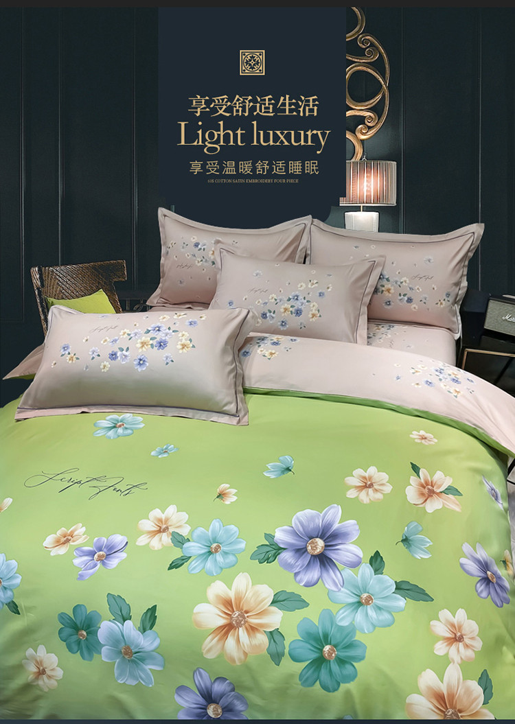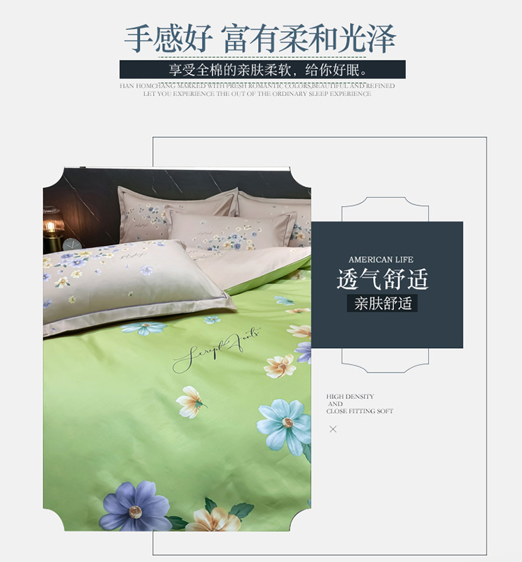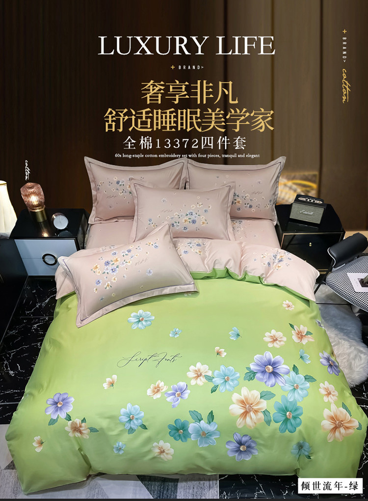 金爱家2023新款大版13372全棉花卉系列四件套倾世流年绿