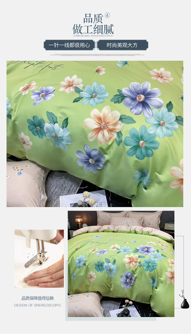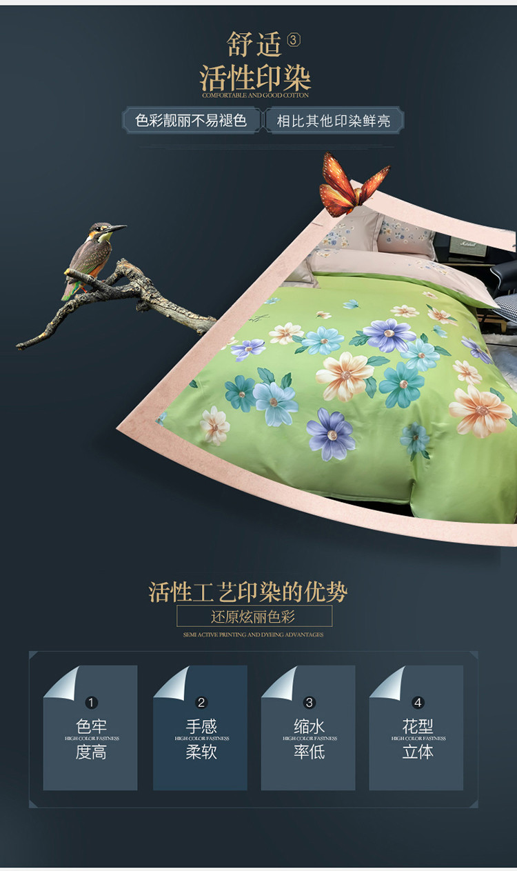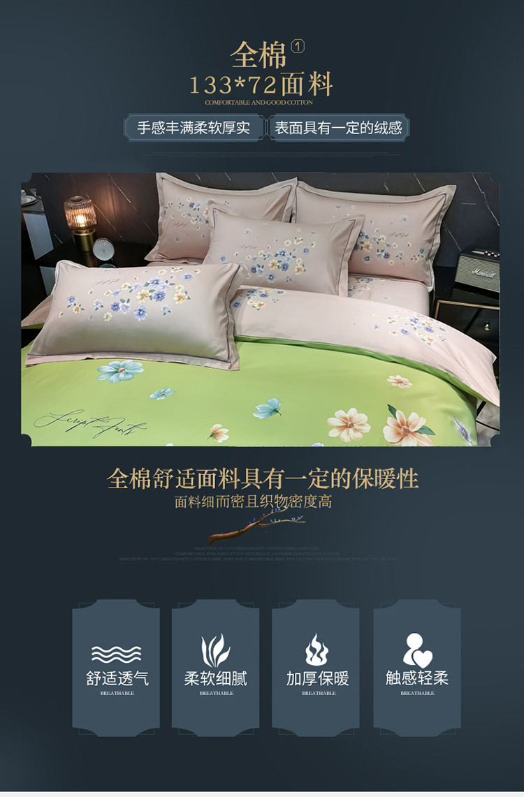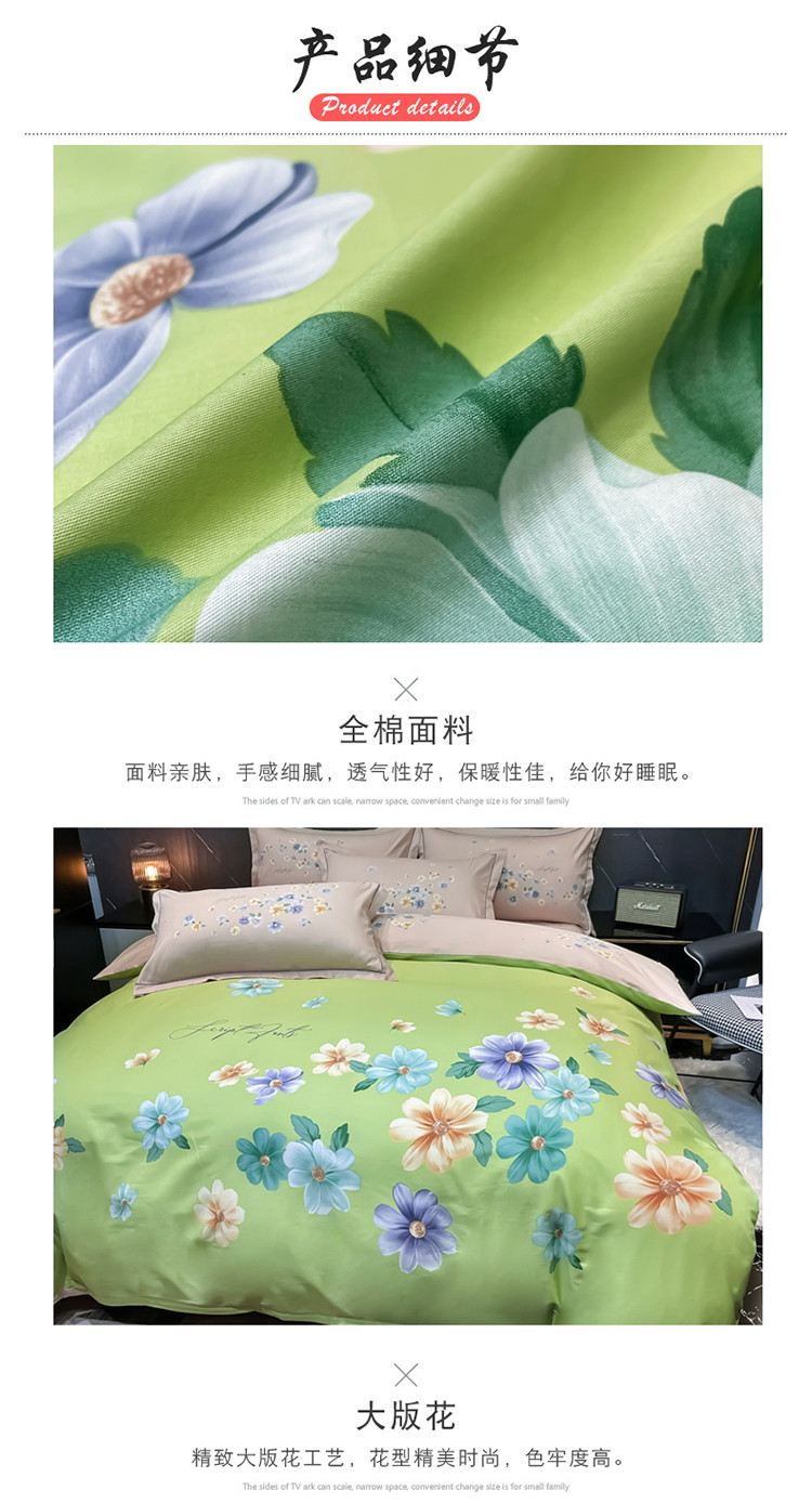 商品名称:金爱家2023新款大版13372全棉花卉系列四件套倾世流年绿