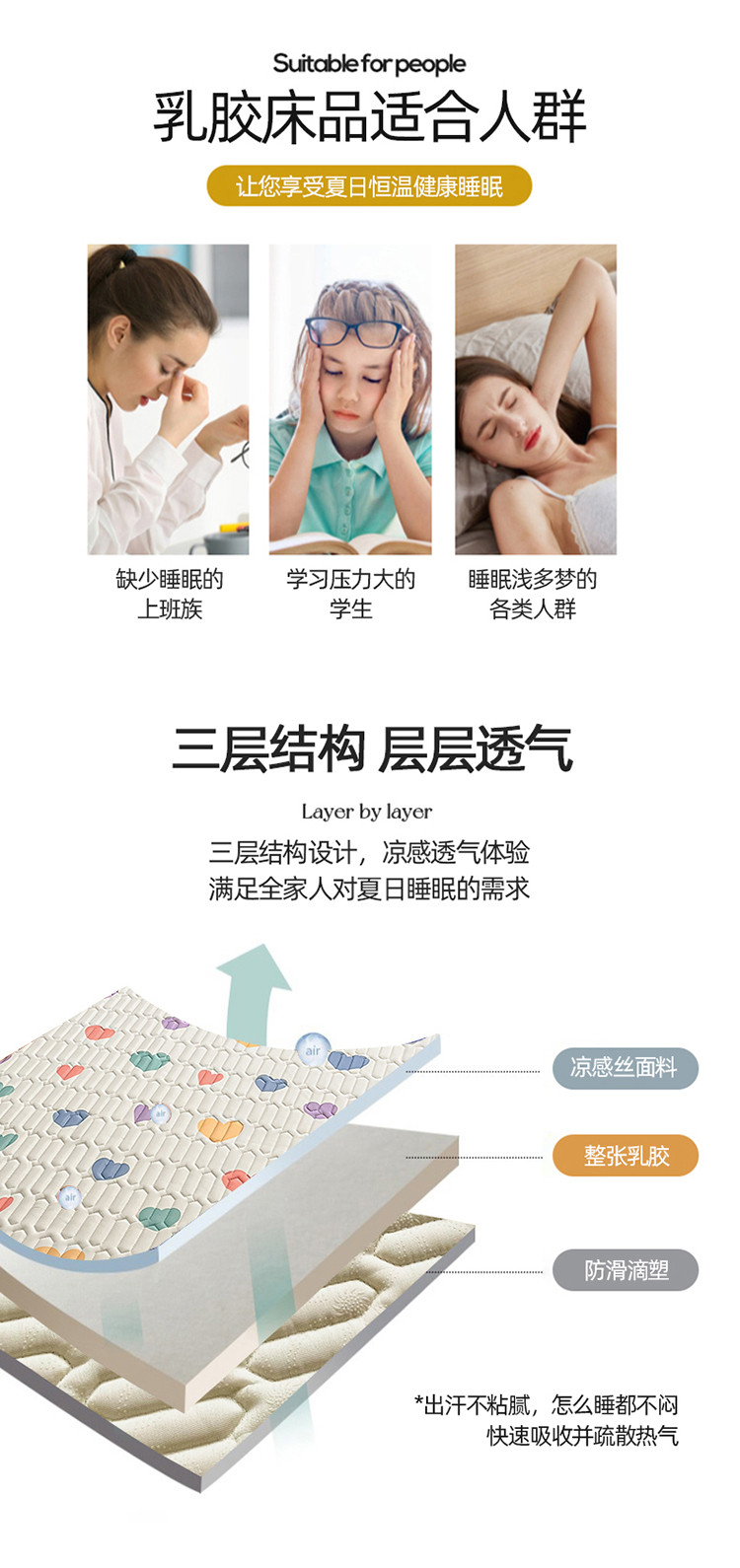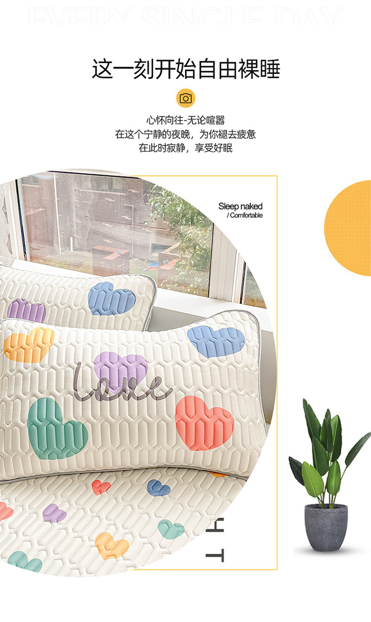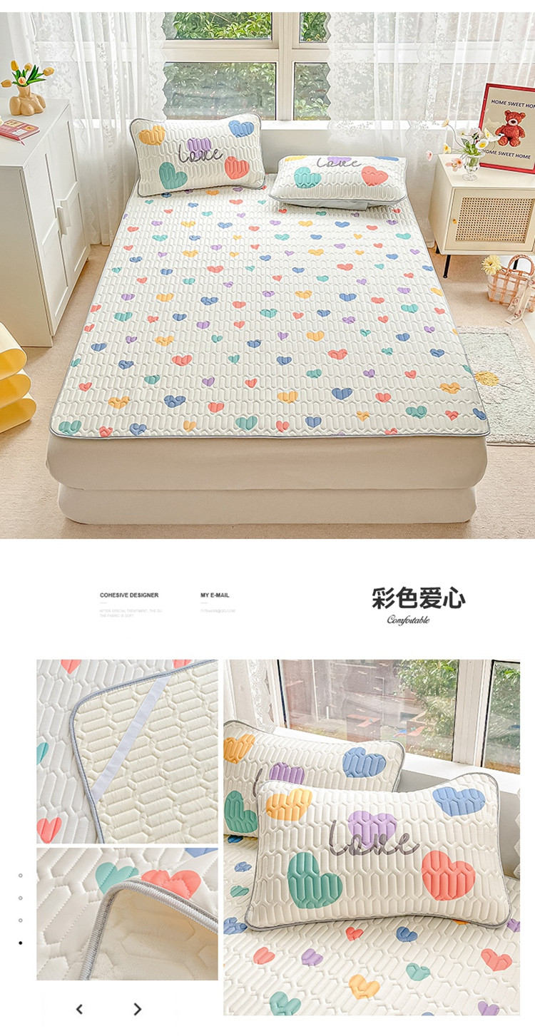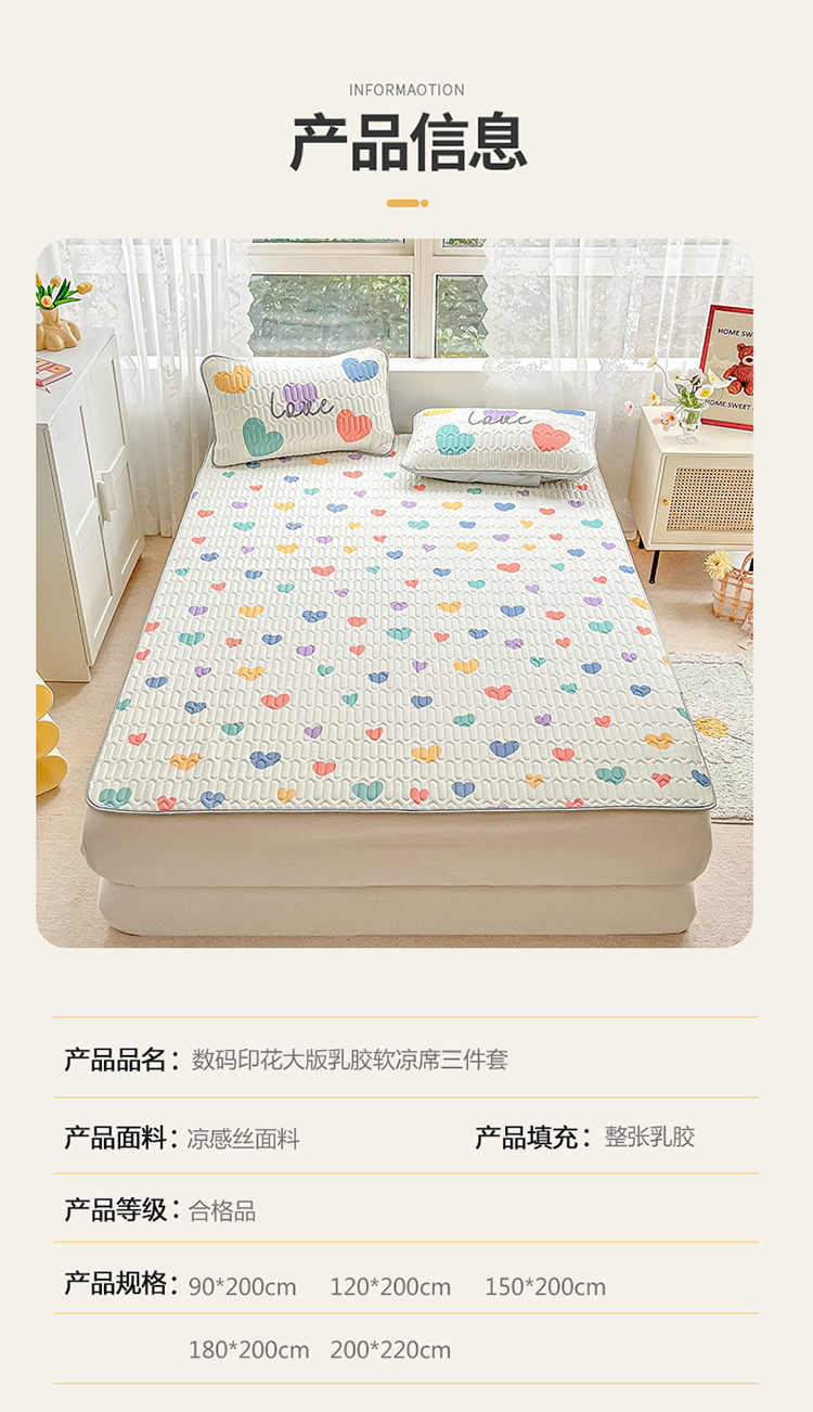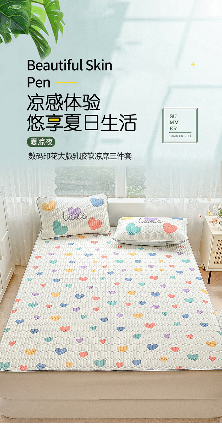 佰亿莱 2024新款大版乳胶软凉席三件套 彩色爱心