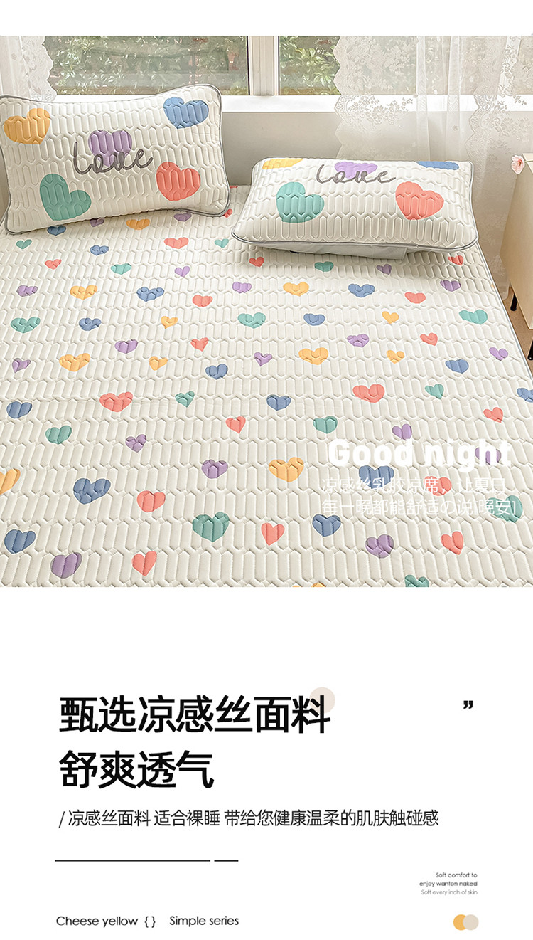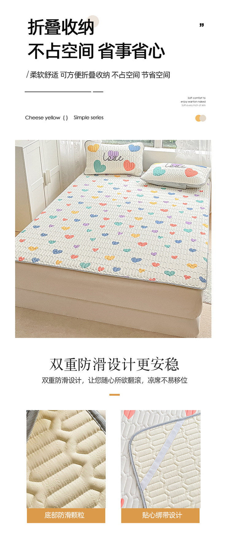 商品名称:佰亿莱 2024新款大版乳胶软凉席三件套 彩色爱心