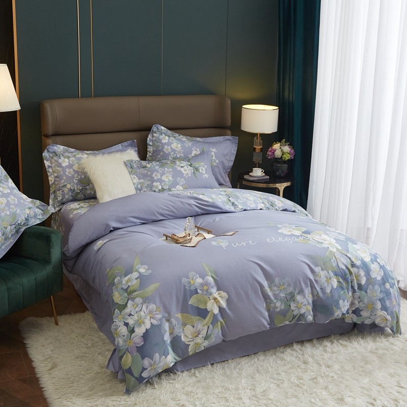 (总)惠居家 2023新款 120支长绒棉利亚款四件套,宝石蓝,橙色,豆沙,高级灰,卡宴蓝,温馨紫