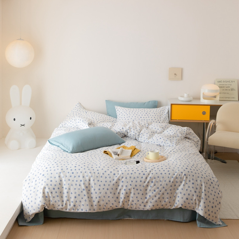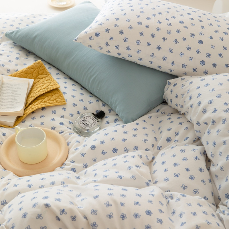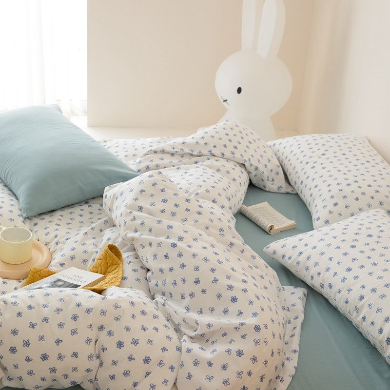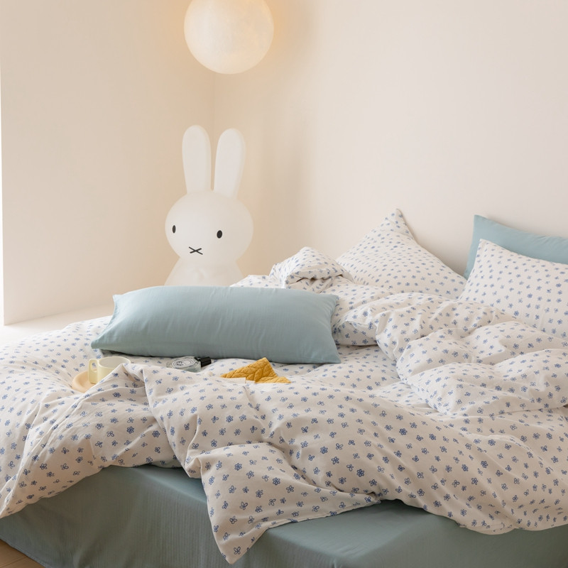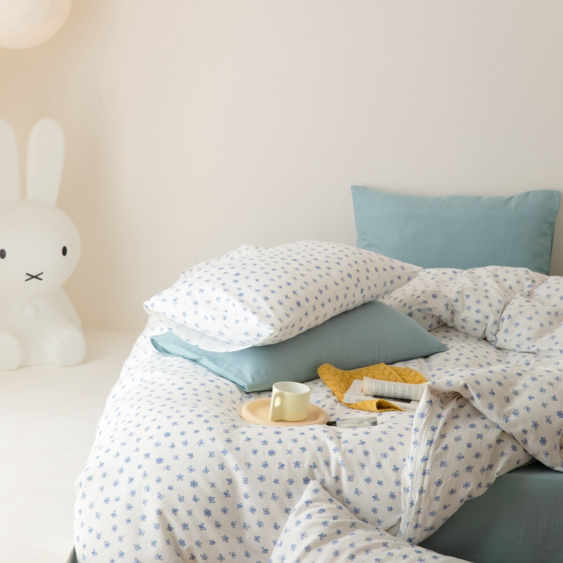 当前位置: 91家纺网 > 商品网购 > 床品套件 > 四件套 > 全棉普通四件套 > 8小时家纺 2022新款全棉双层纱四件套 蓝菲