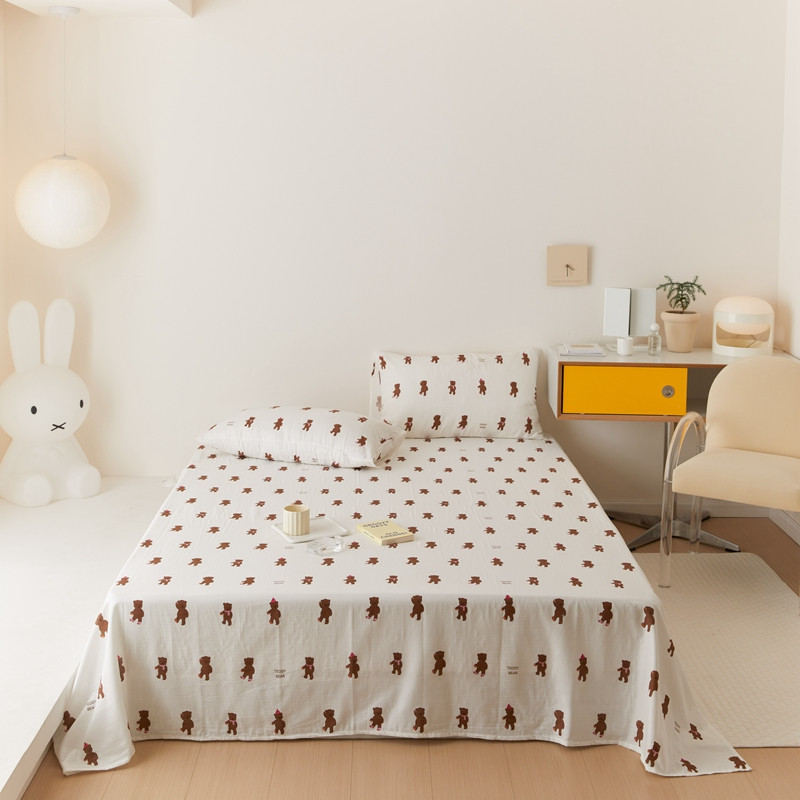 8小时家纺 2022新款全棉双层纱单品床单 围巾熊