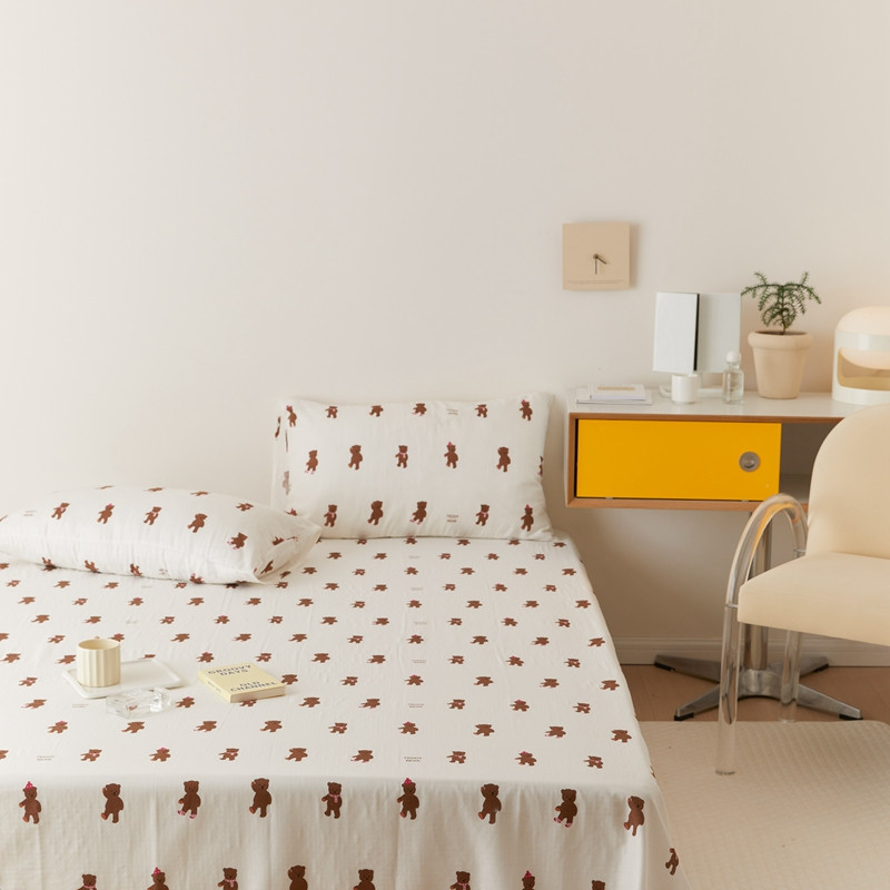 商品名称:8小时家纺 2022新款全棉双层纱单品床单 围巾熊