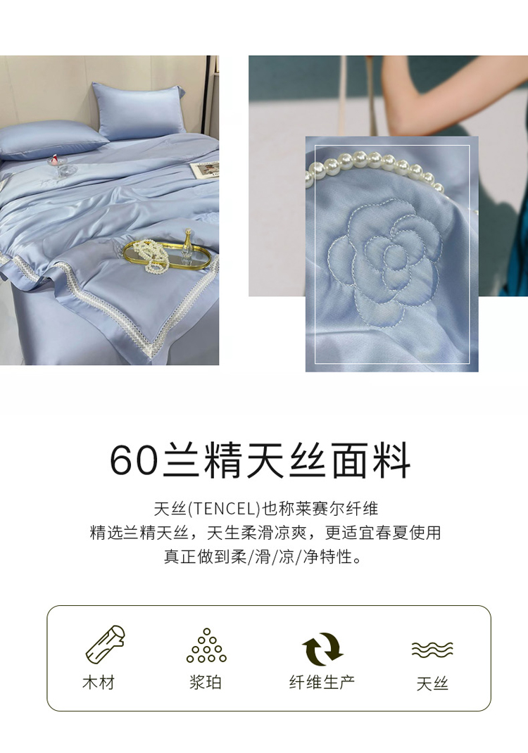 商品名称:寐居家纺 2022新款60兰精天丝夏凉被 天丝-天空蓝