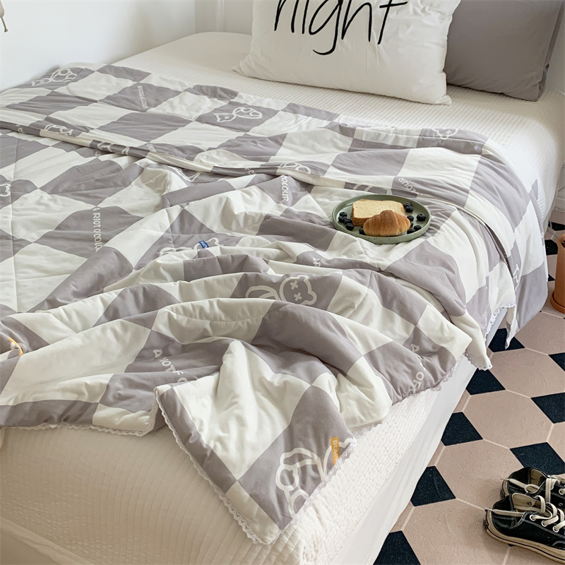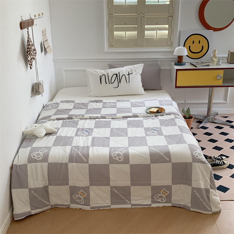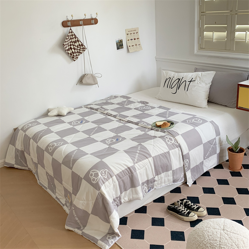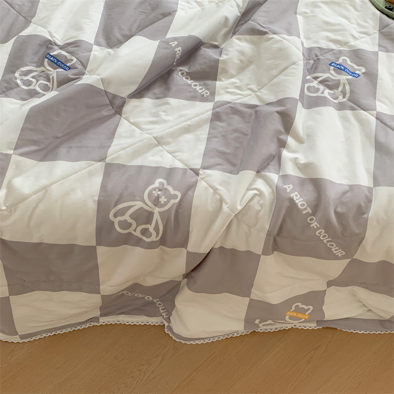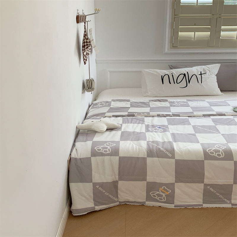 商品名称:顾里家纺 2022新款牛奶针织棉夏被-韩式场景 方块小熊灰