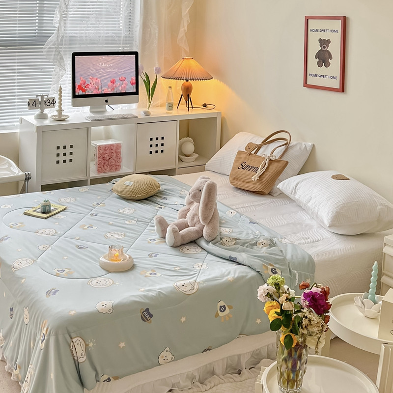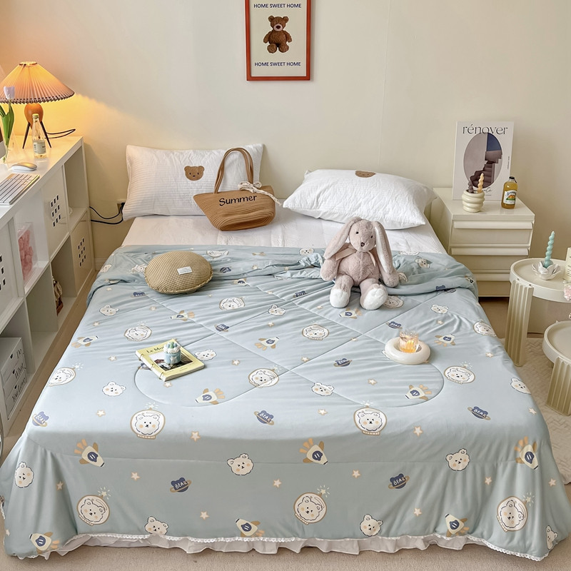 顾里家纺 2022新款牛奶针织棉夏被-实拍 太空熊蓝