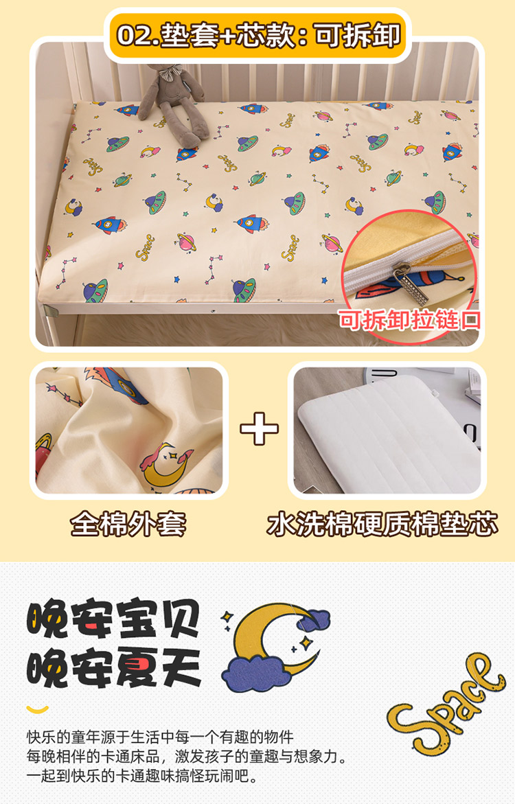 当前位置: 91家纺网 > 商品网购 > 床垫/床褥/床护垫 > 普通床垫 > 宝贝优选 2022新款全棉儿童四季床垫可拆卸款+一体款 宇宙探险(一体款)