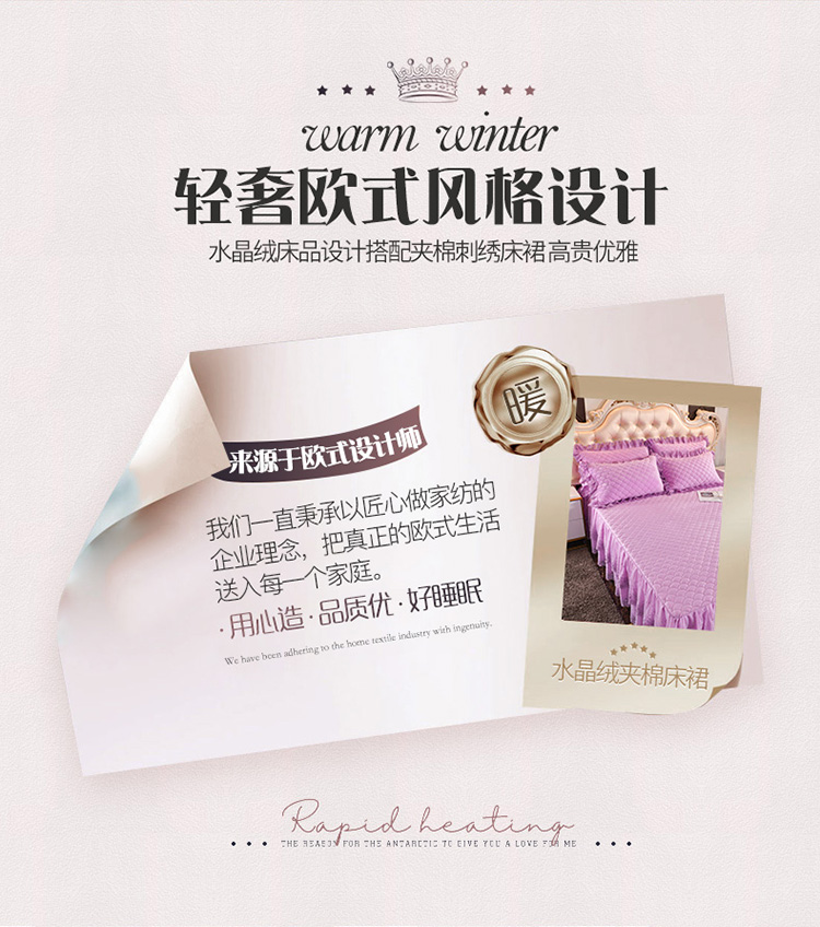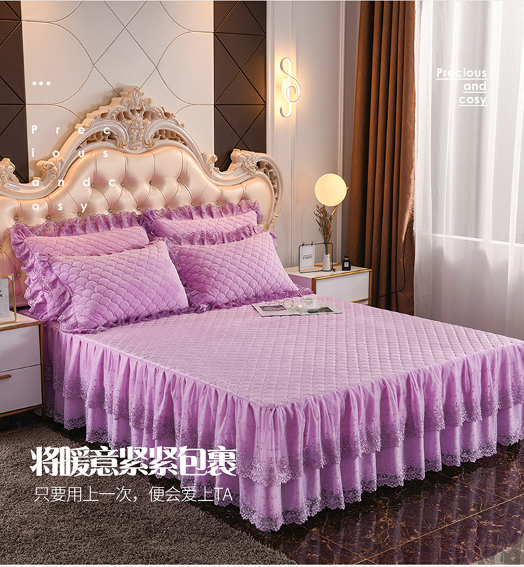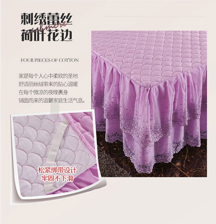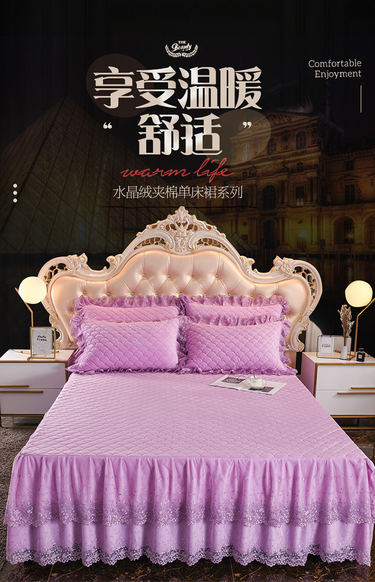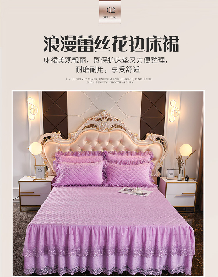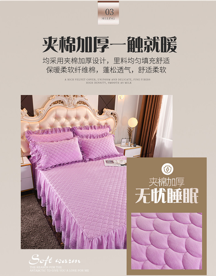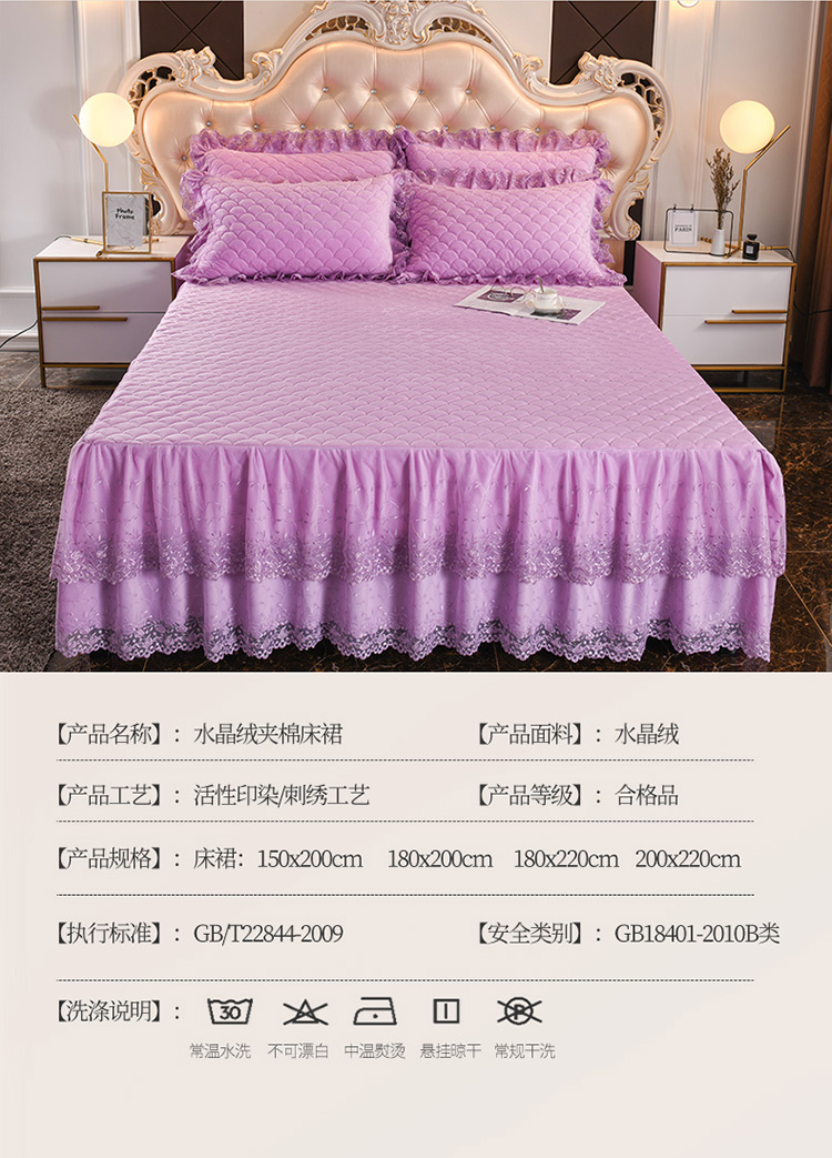 • 91家纺网 家纺一手货源 找家纺 恒爱 2022秋冬水晶绒翩翩花舞夹棉单床裙 罗兰紫