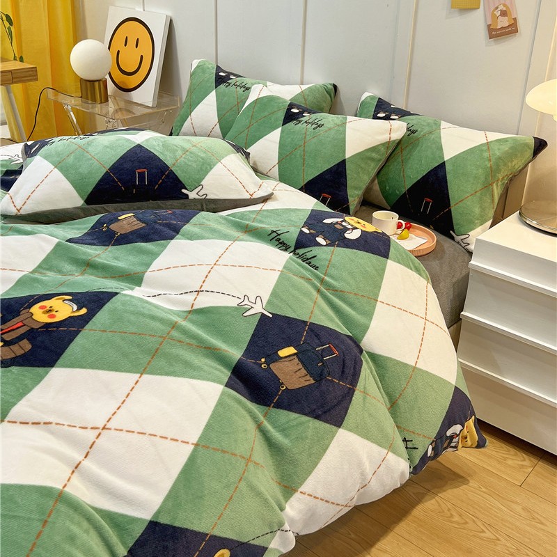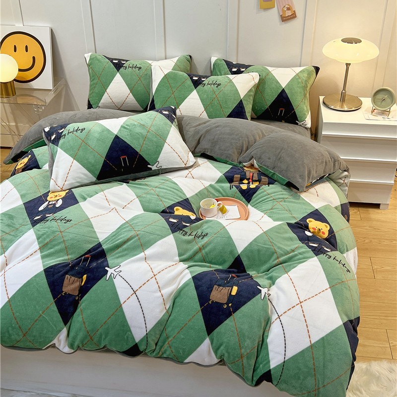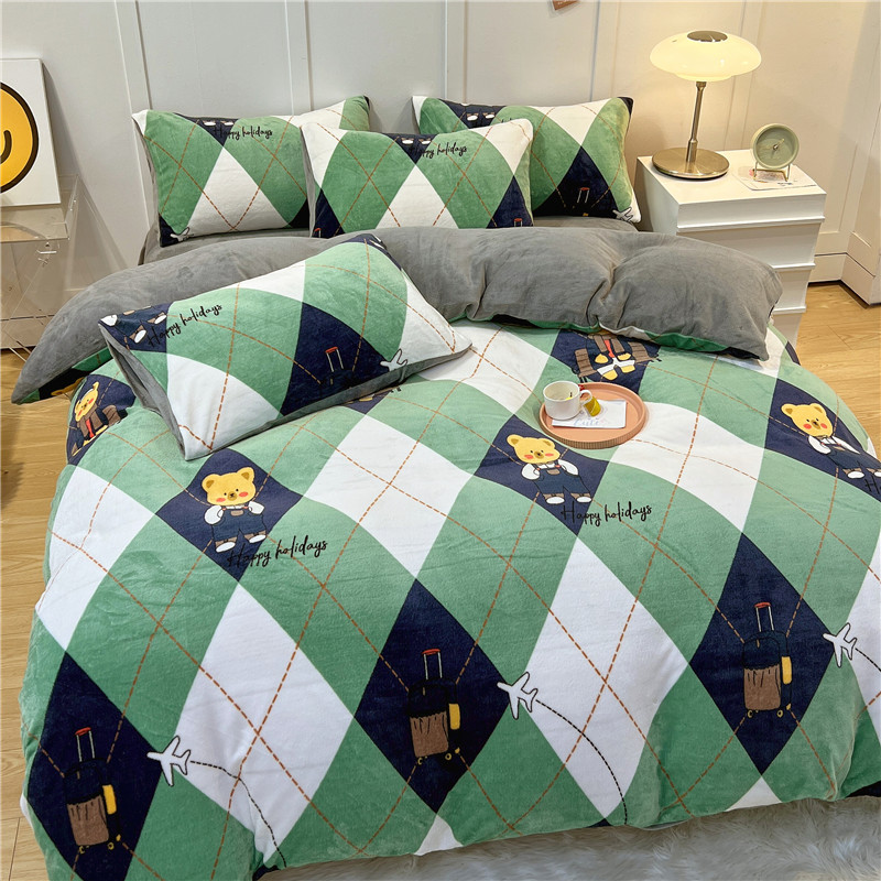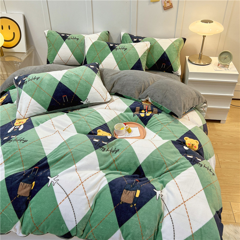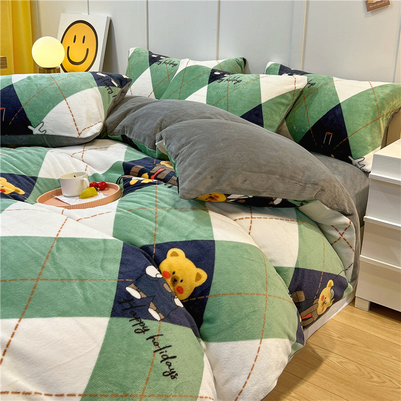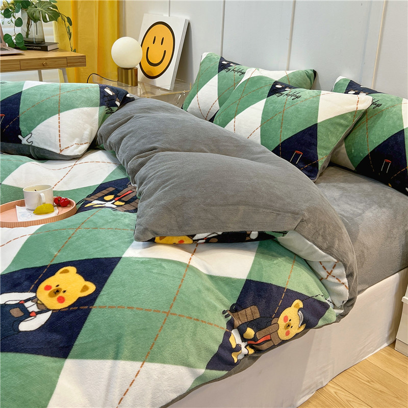 孩子王 新款冬季加厚牛奶绒水晶绒珊瑚绒印花系列单被套 英伦熊