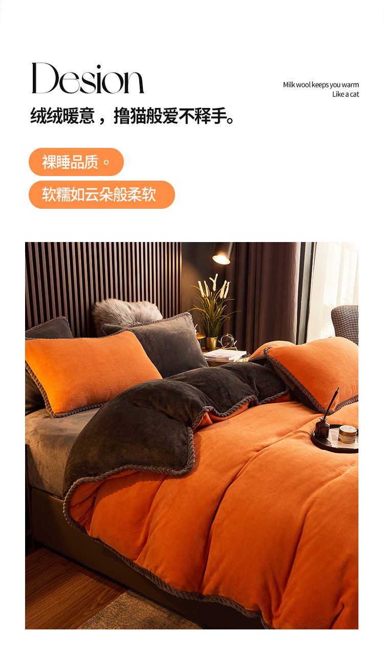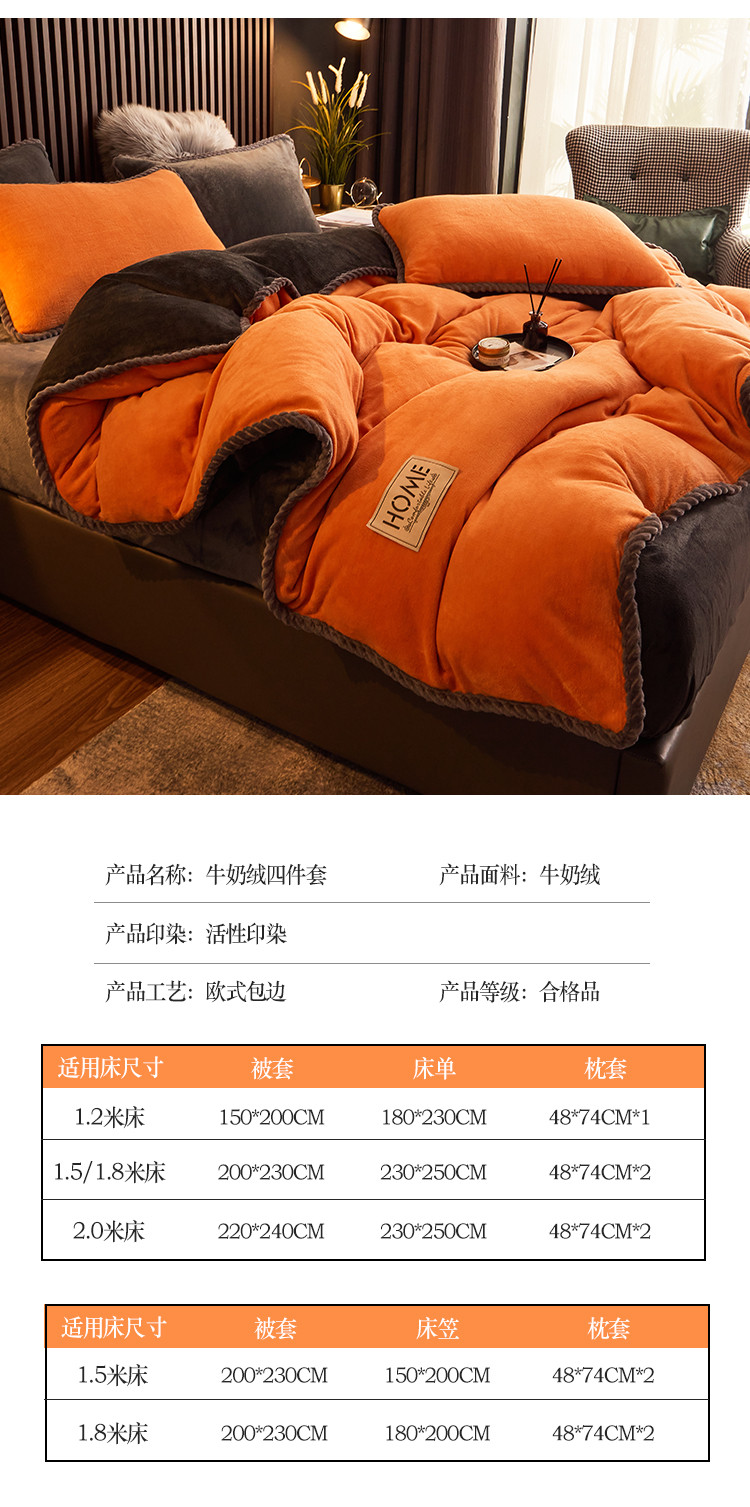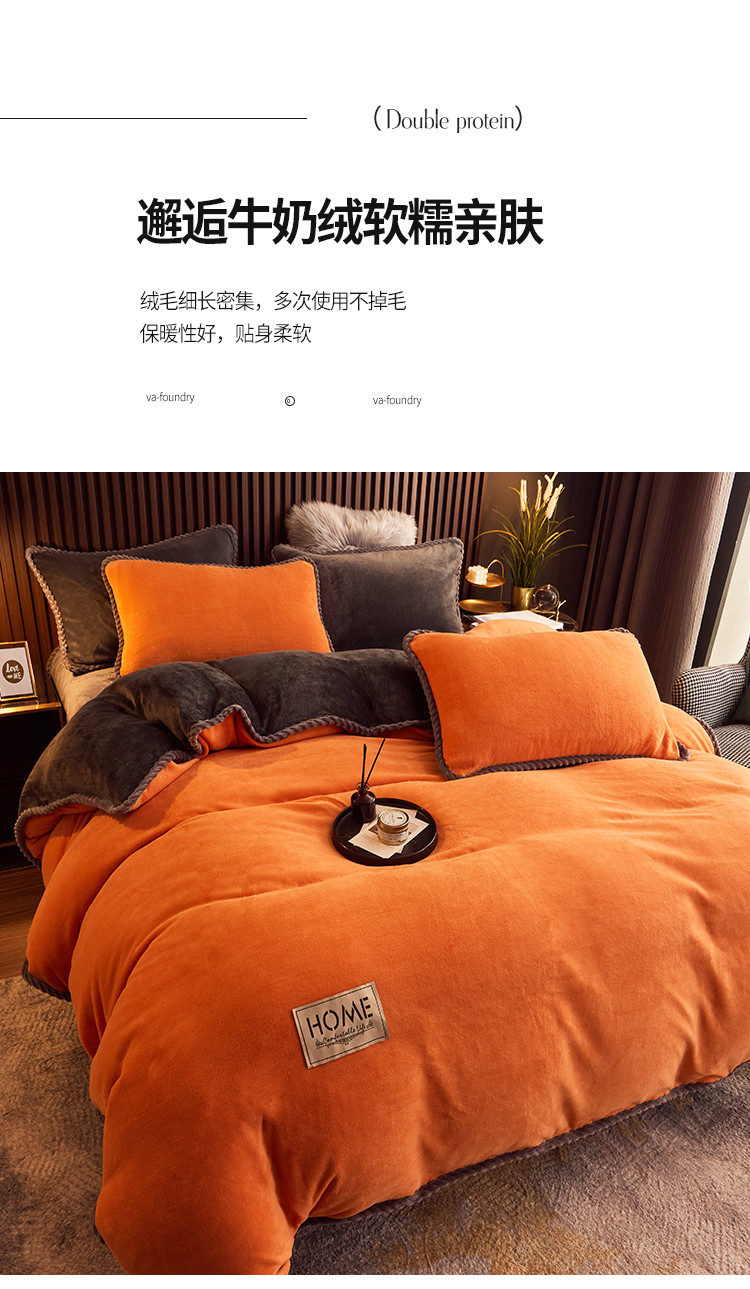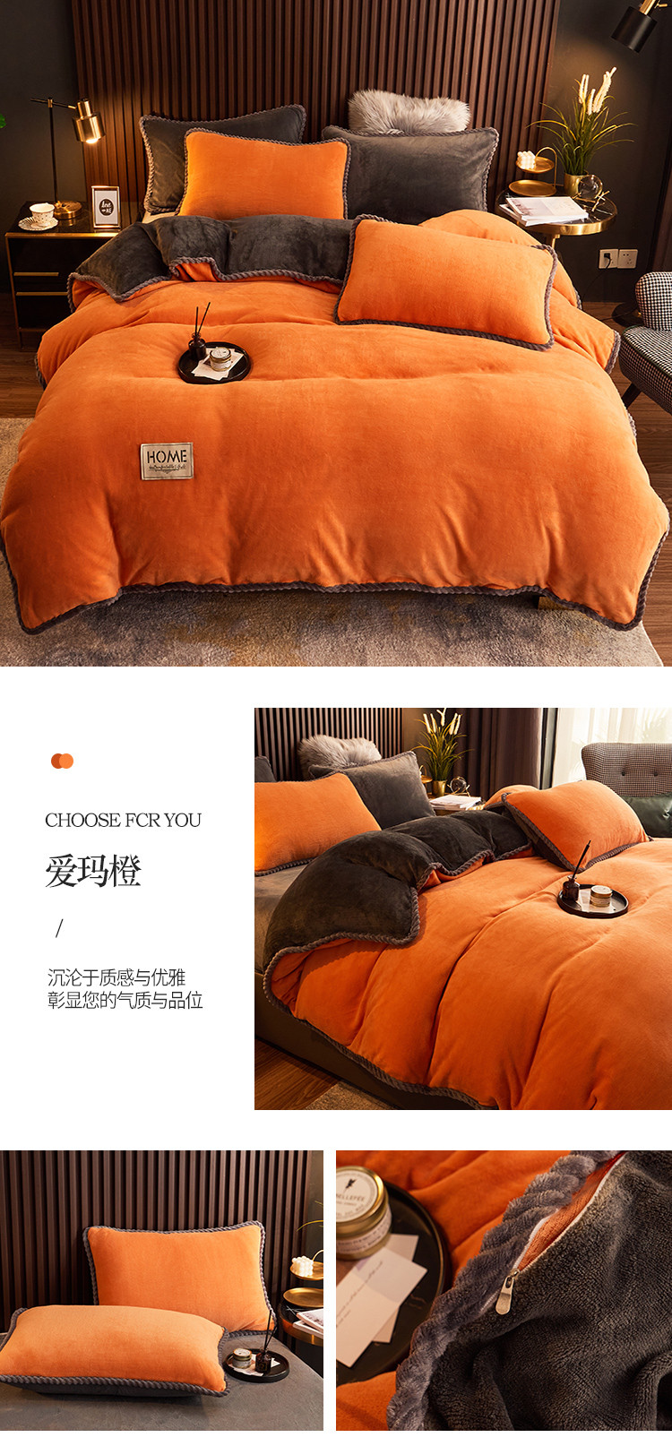 (总)闲鱼家纺 2025款高克重欧式包边牛奶绒四件套,爱玛橙,高级灰,湖光蓝,墨绿,浅咖啡,深豆沙,深灰,深酒红,樱花粉