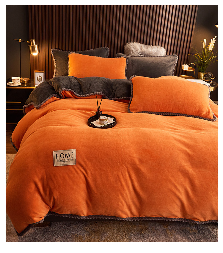 闲鱼家纺 2025款高克重欧式包边牛奶绒单被套-爱玛橙