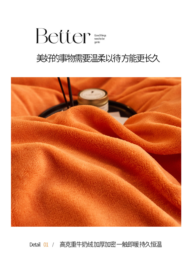 商品名称:闲鱼家纺 2025款高克重欧式包边牛奶绒单被套-爱玛橙