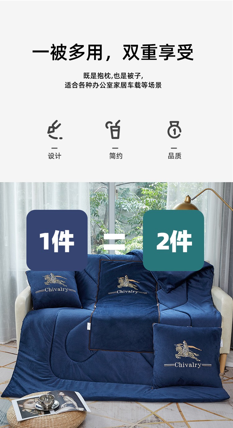 商品名称:翰轩家居 2022新款水晶绒绣花抱枕被系列-骑士 骑士-藏青