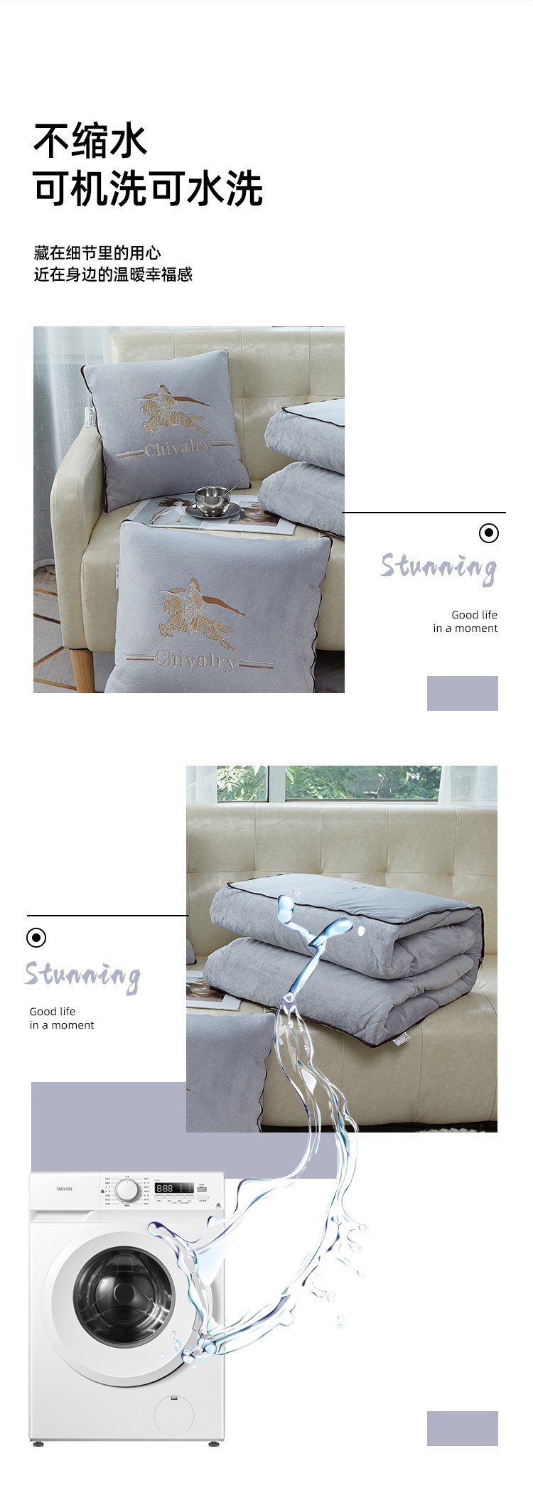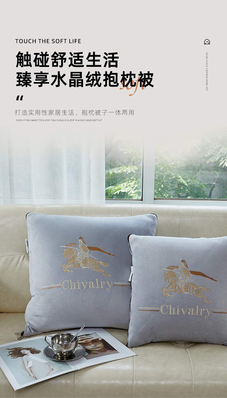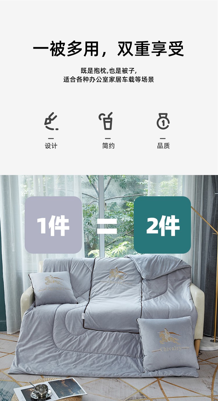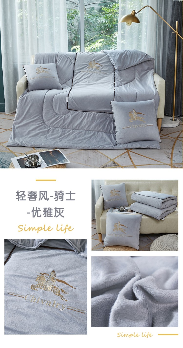 商品名称:翰轩家居 2022新款水晶绒绣花抱枕被系列-骑士 骑士-优雅灰