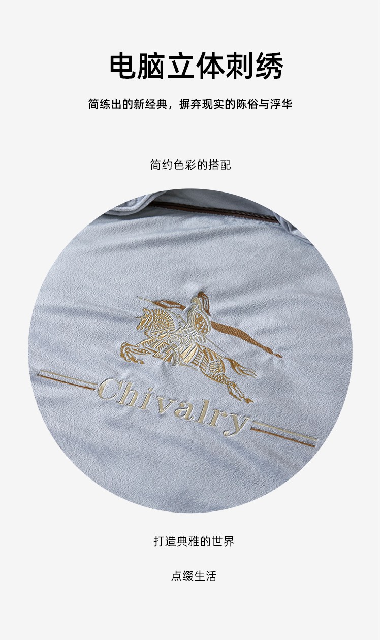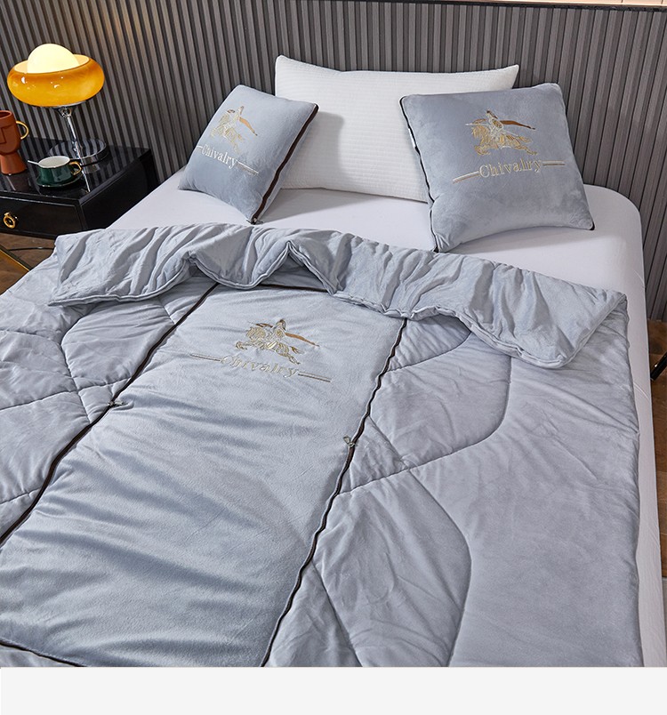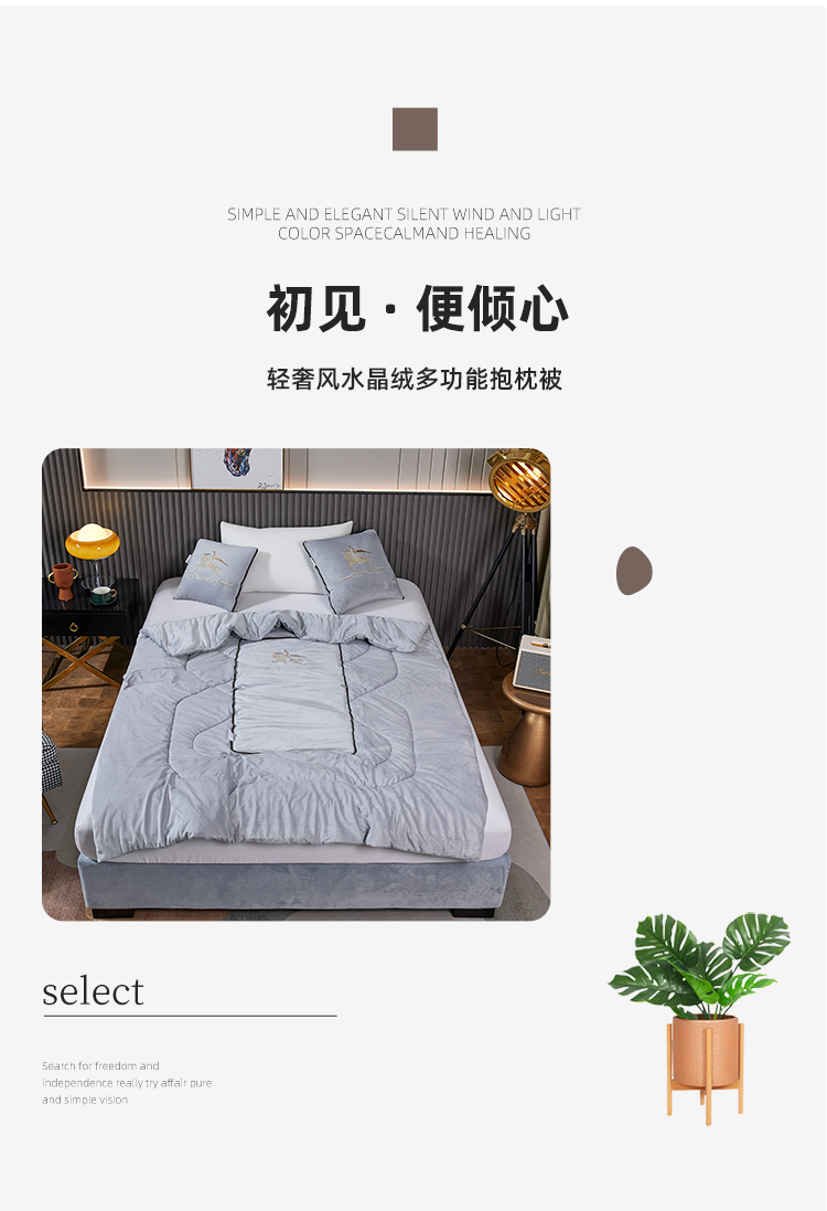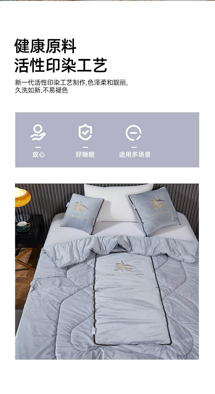 商品名称:翰轩家居 2022新款水晶绒绣花抱枕被系列-骑士 骑士-优雅灰