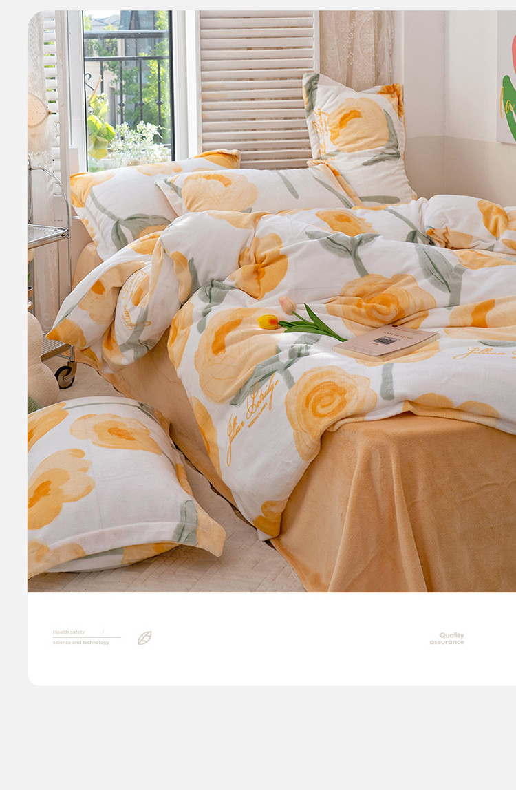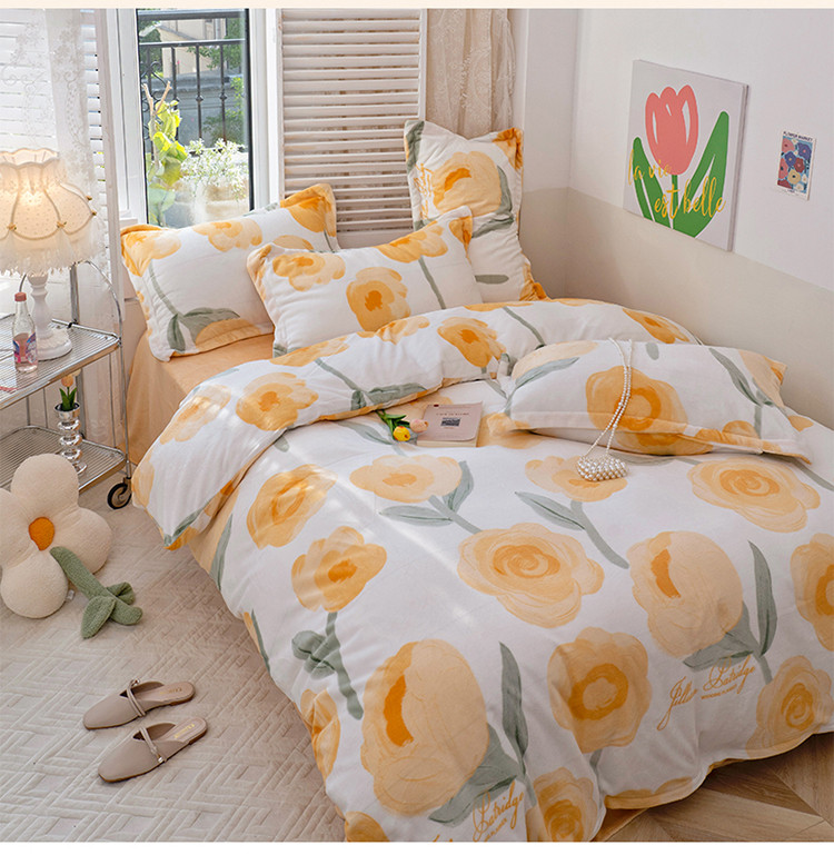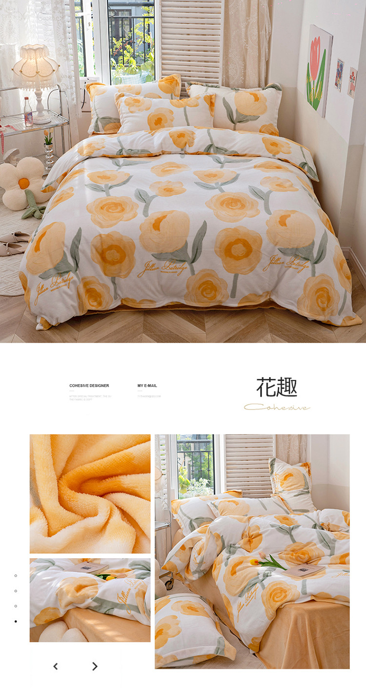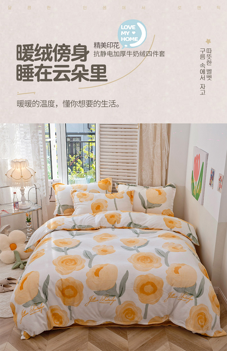商品名称:沐棉 2022新款抗静电高克重加厚小清新印花牛奶绒四件套 花趣