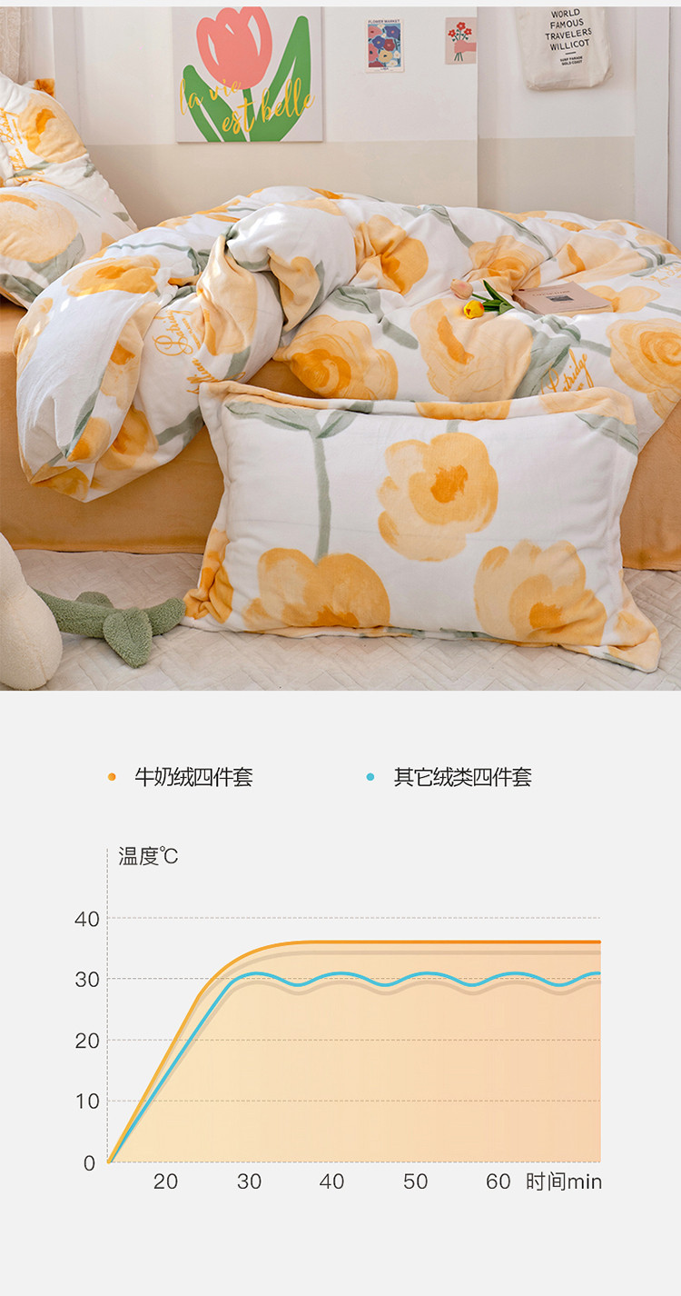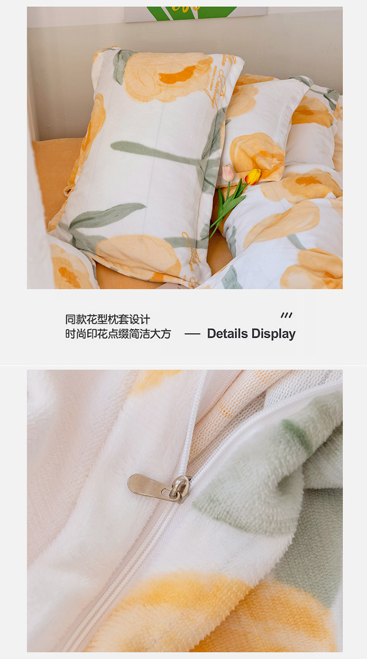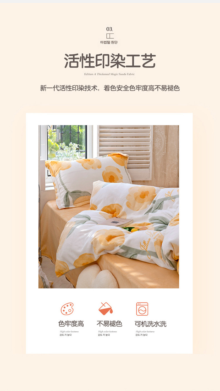 商品名称:沐棉 2022新款抗静电高克重加厚小清新印花牛奶绒四件套 花趣