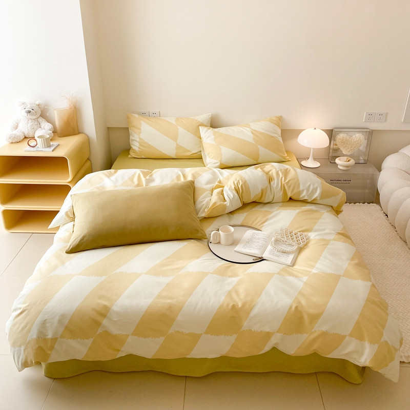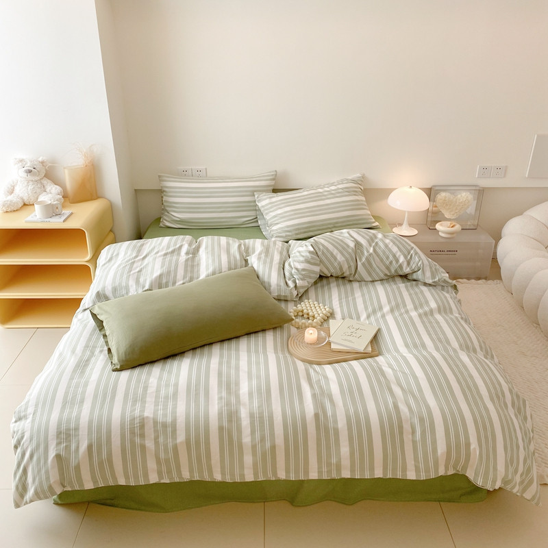 (总)昔可 2023新款全棉ins格子混搭系列四件套,ins简约绿格,粉蓝格,开心果格,学院格纹,粉绿格,海盐兰格,黄绿格,夏日蓝条,芝士黄条,紫芋泥芝士格