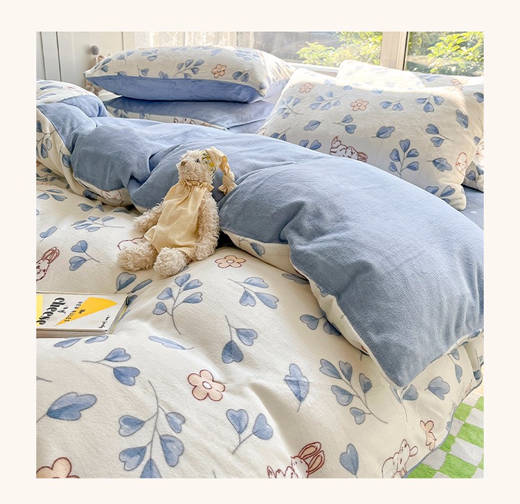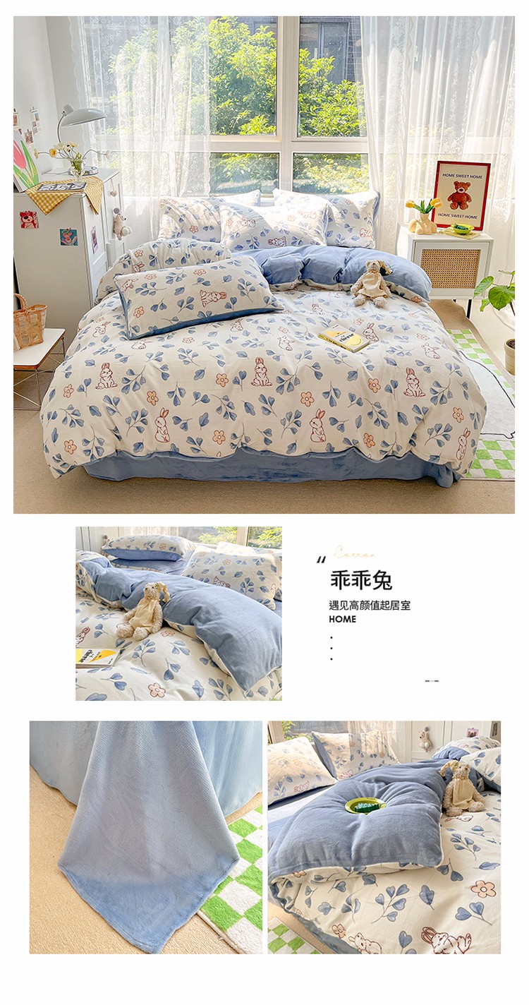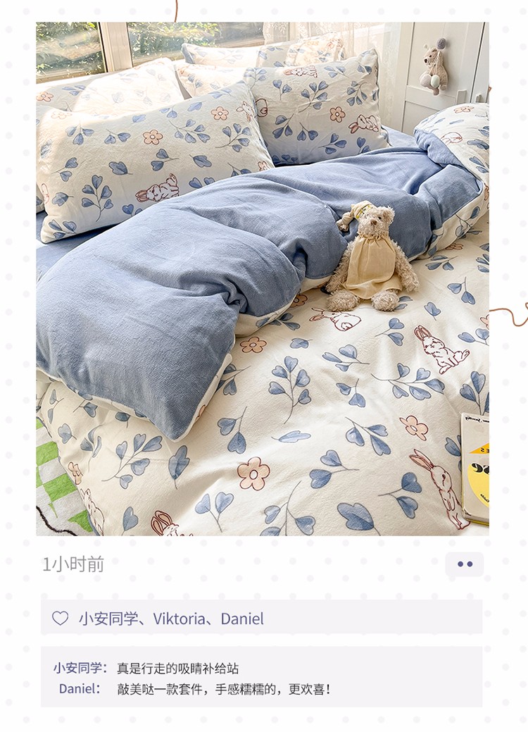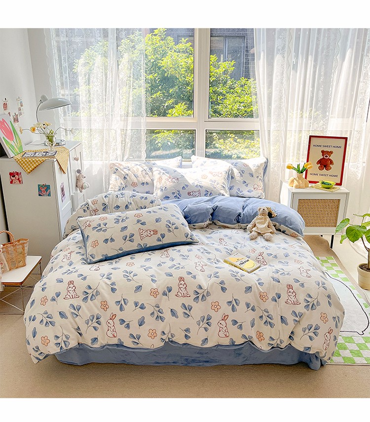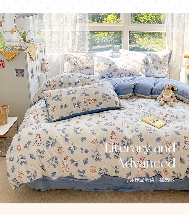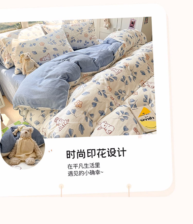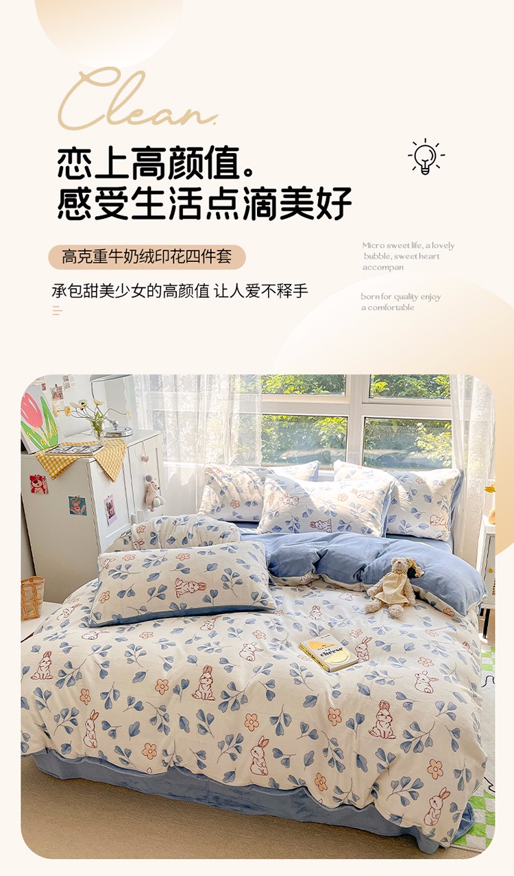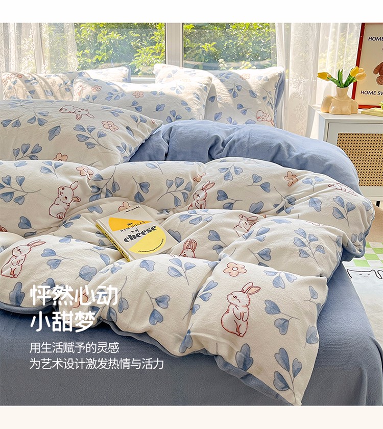 商品名称:雅居纺 2022新款牛奶绒印花四件套 乖乖兔