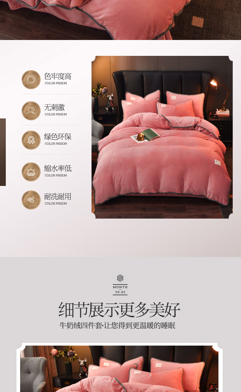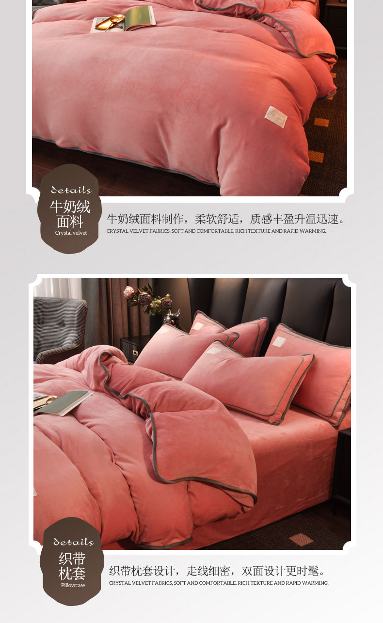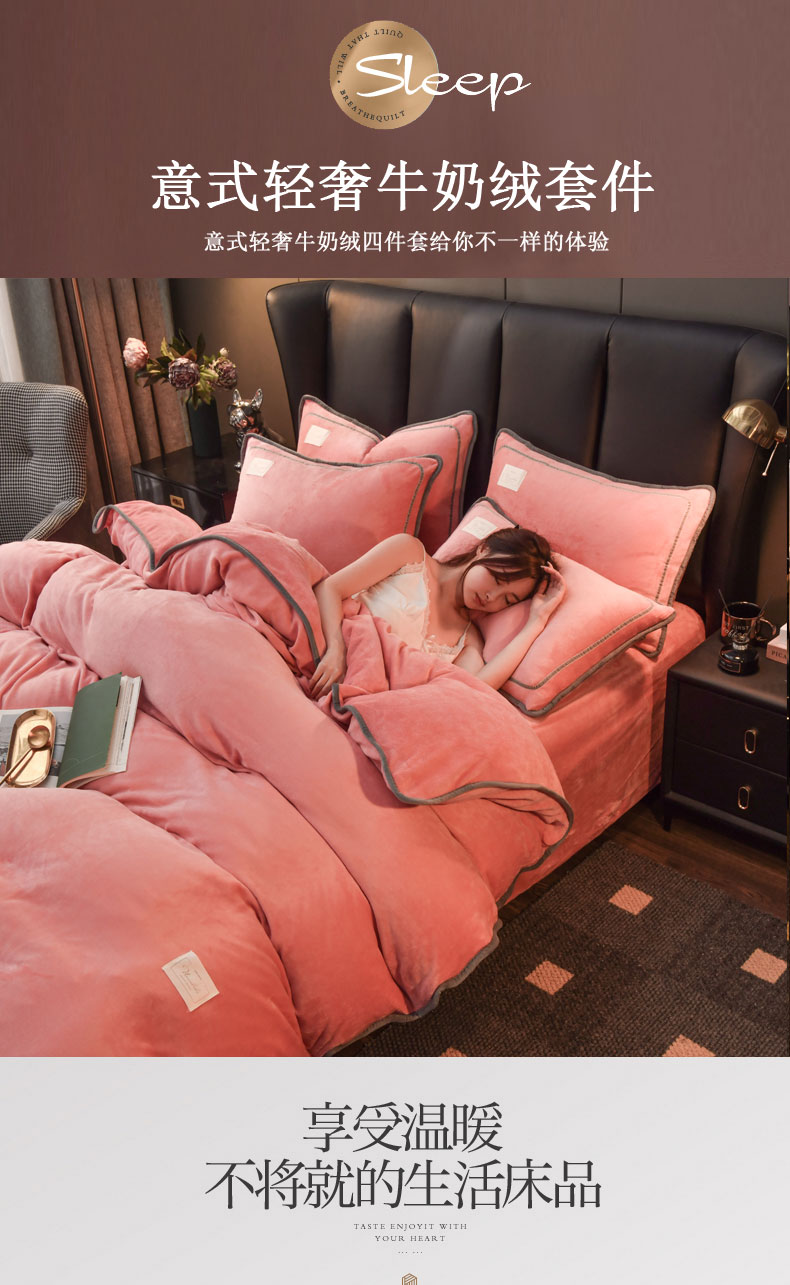 当前位置: 91家纺网 > 商品网购 > 床品套件 > 四件套 > 牛奶绒四件套 > 啊雅家居 2026新款纯色包边双面牛奶绒四件套 包砖色