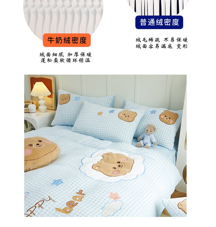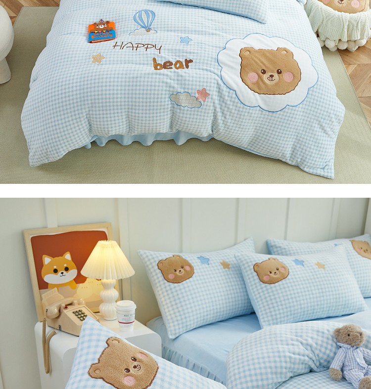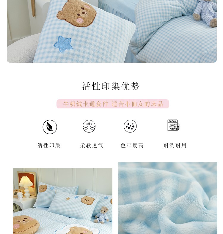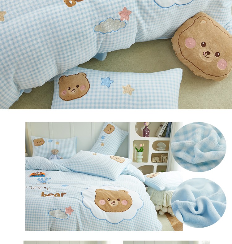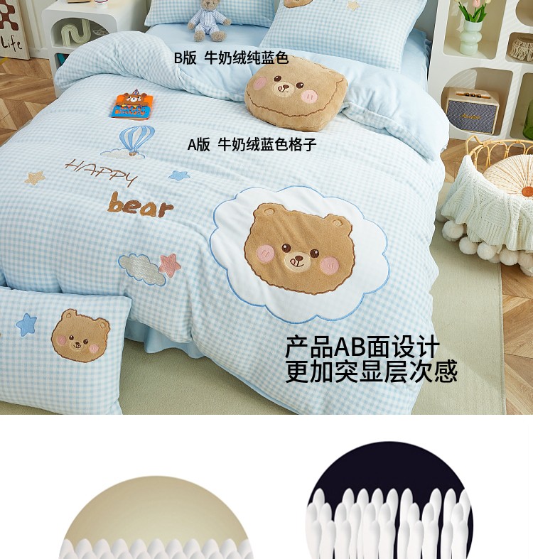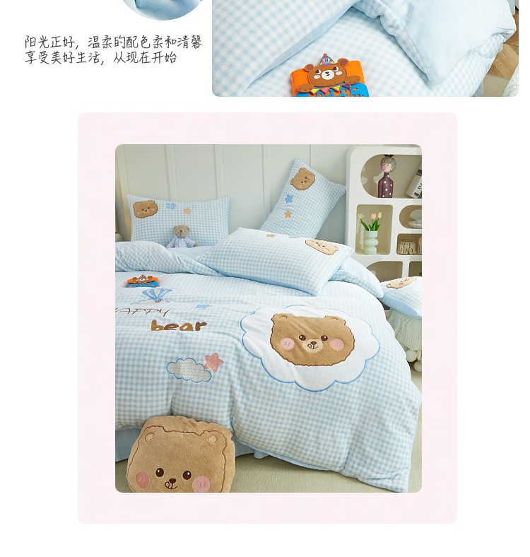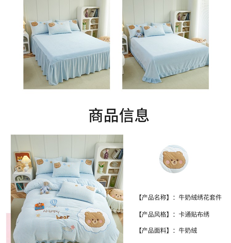 当前位置: 91家纺网 > 商品网购 > 床品套件 > 四件套 > 牛奶绒四件套 > (总)亲亲公主 2025新款牛奶绒卡通绣花四件套-蓝色小熊