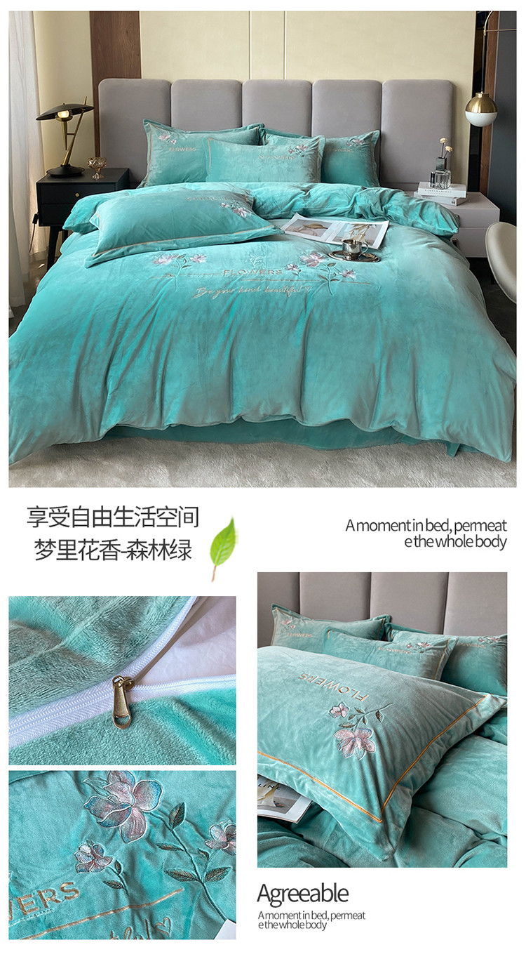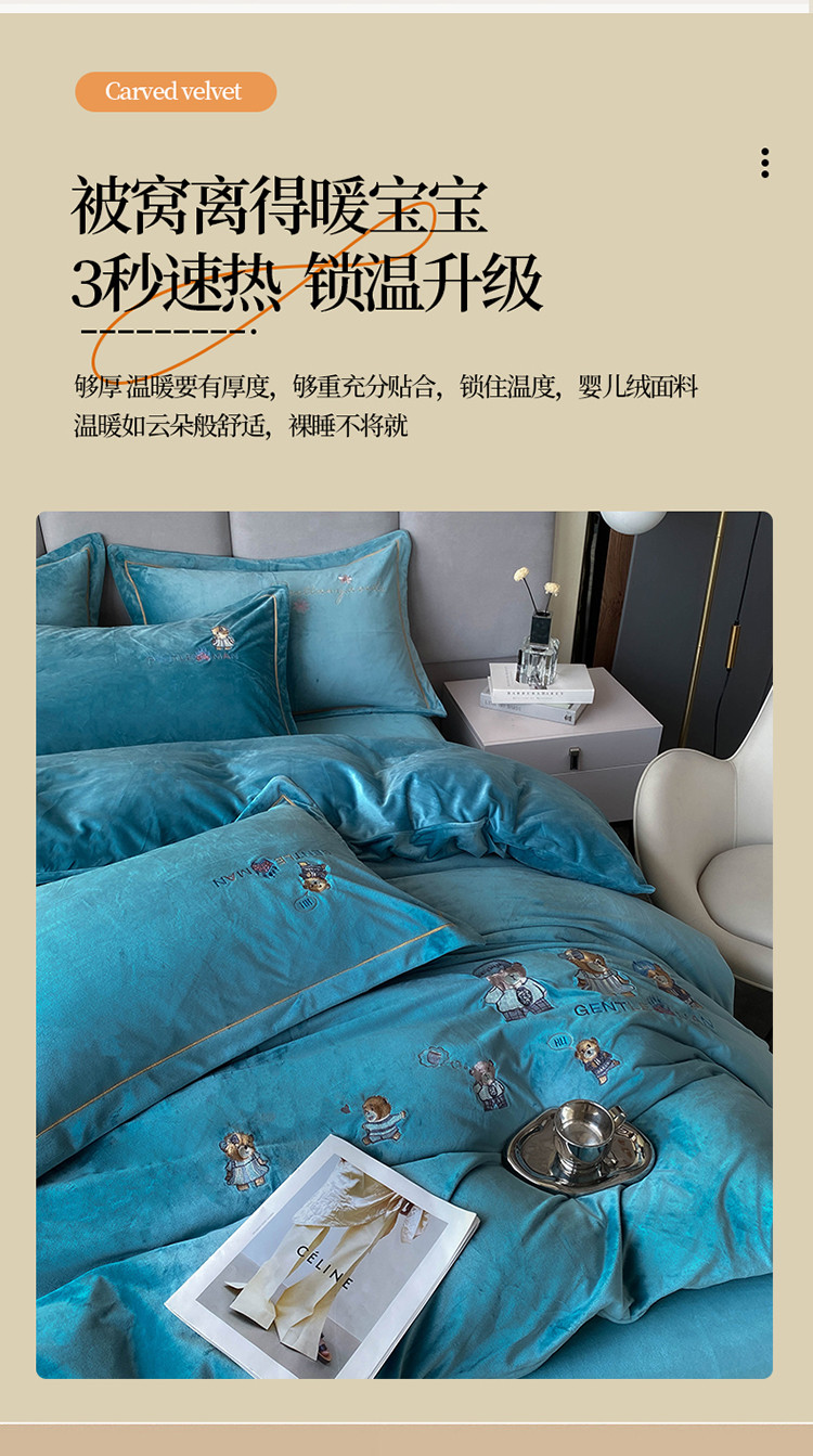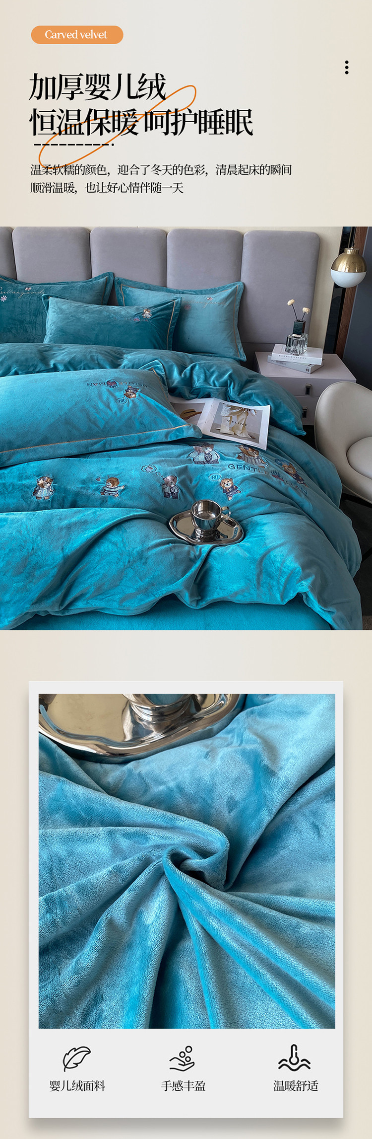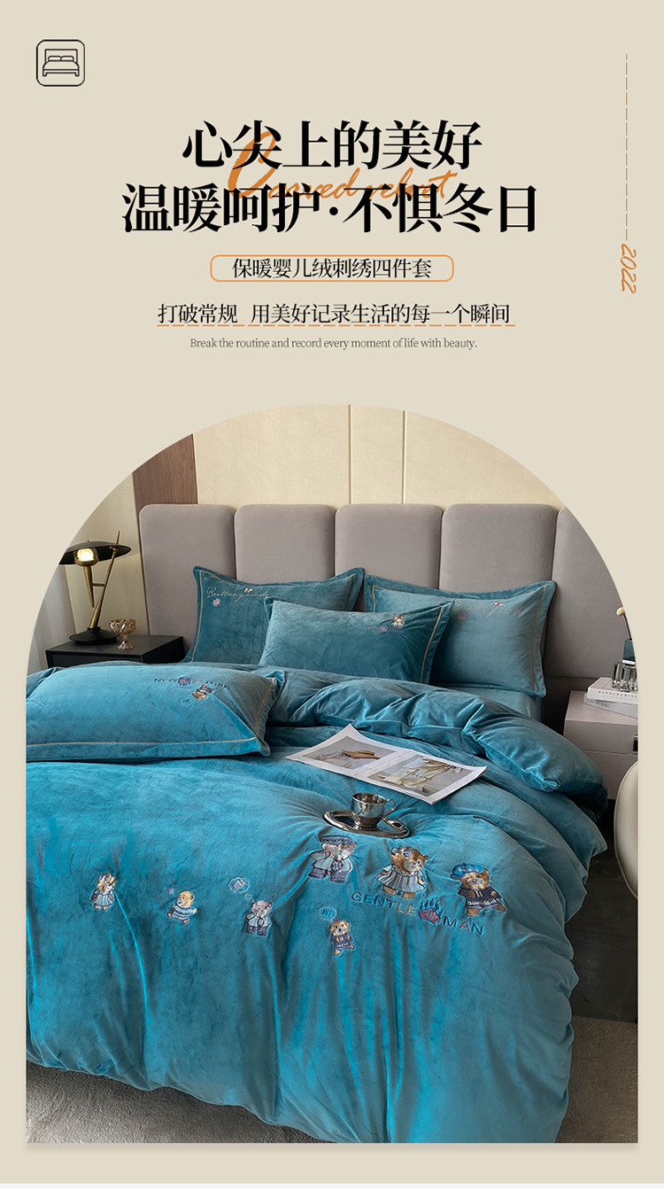 (总)云锦 2022秋冬新品加厚婴儿绒刺绣四件套