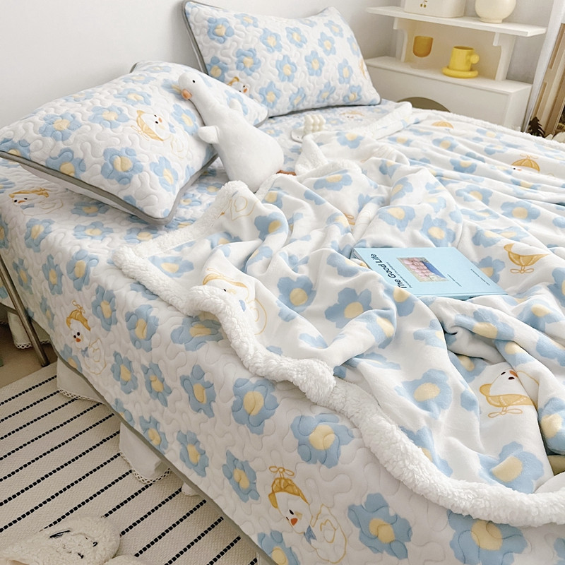 美乐迪 2022新款多功能牛奶绒亲肤棉床盖套件 快乐鸭
