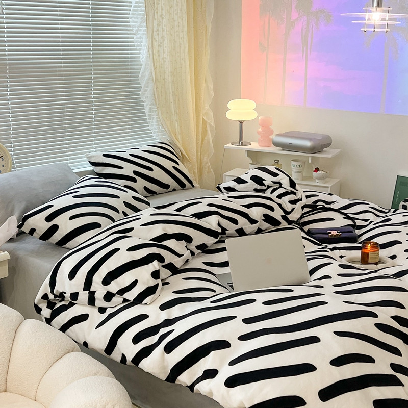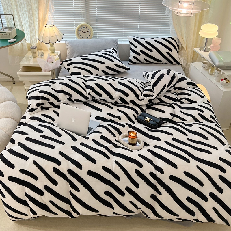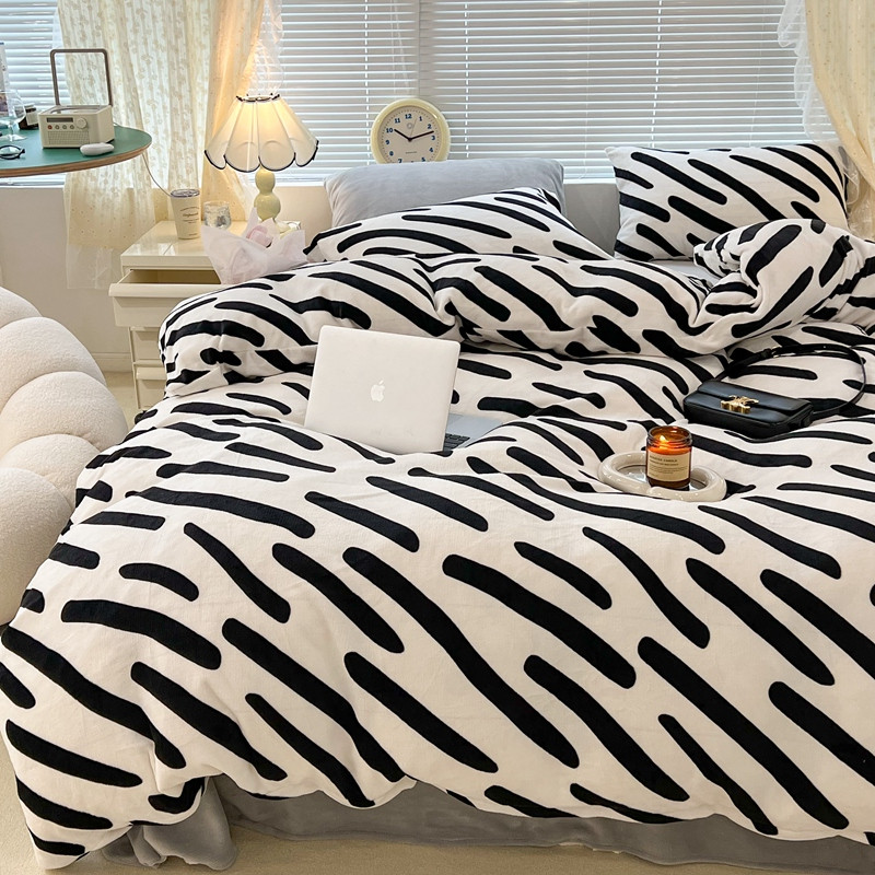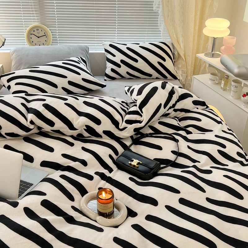 商品名称:昔可 2022新款牛奶绒简约系列四件套 斑马条纹