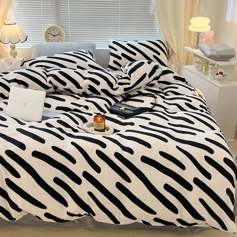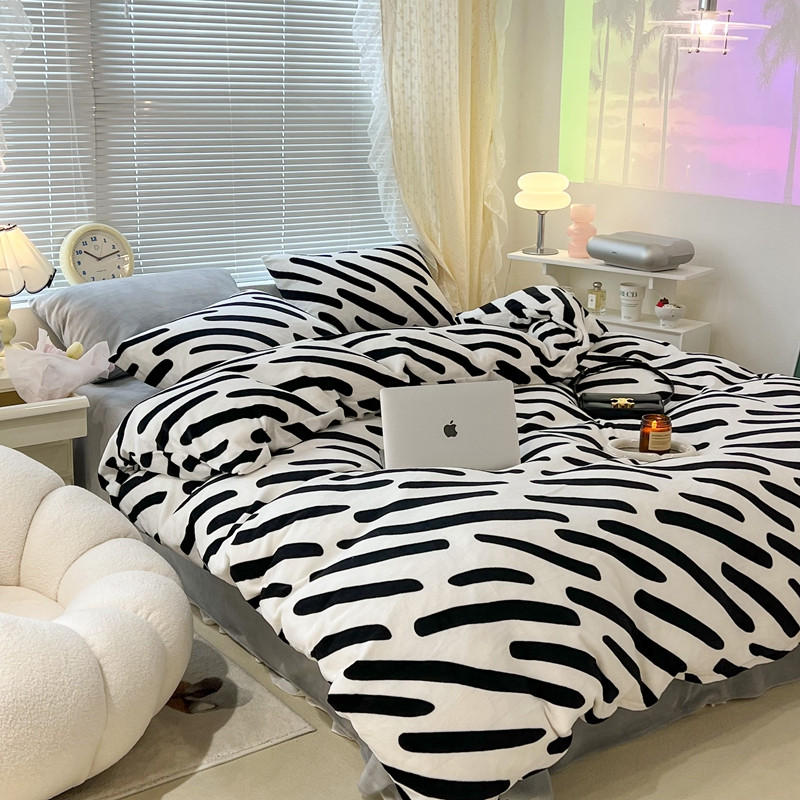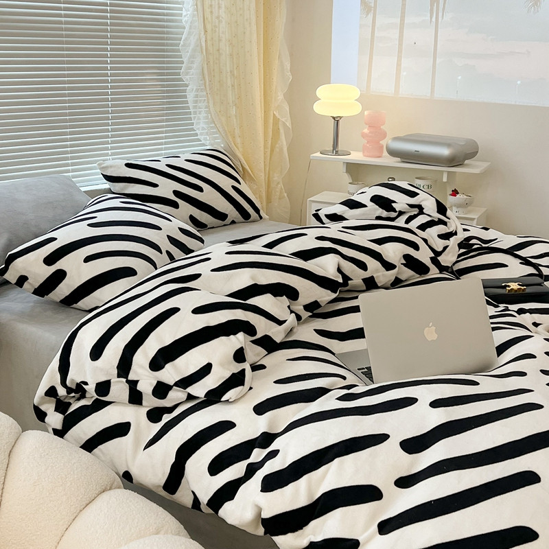 昔可 2022新款牛奶绒简约系列四件套 斑马条纹