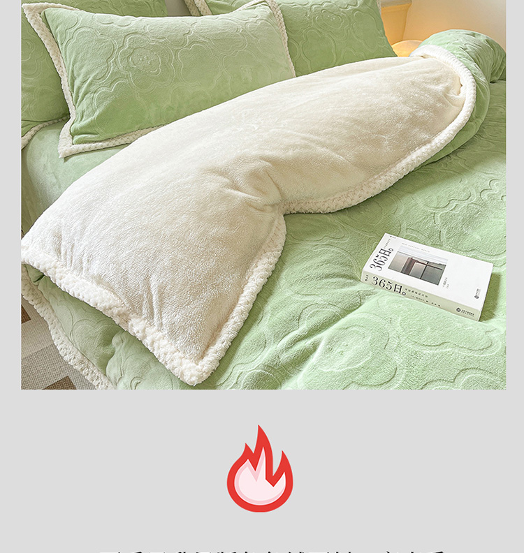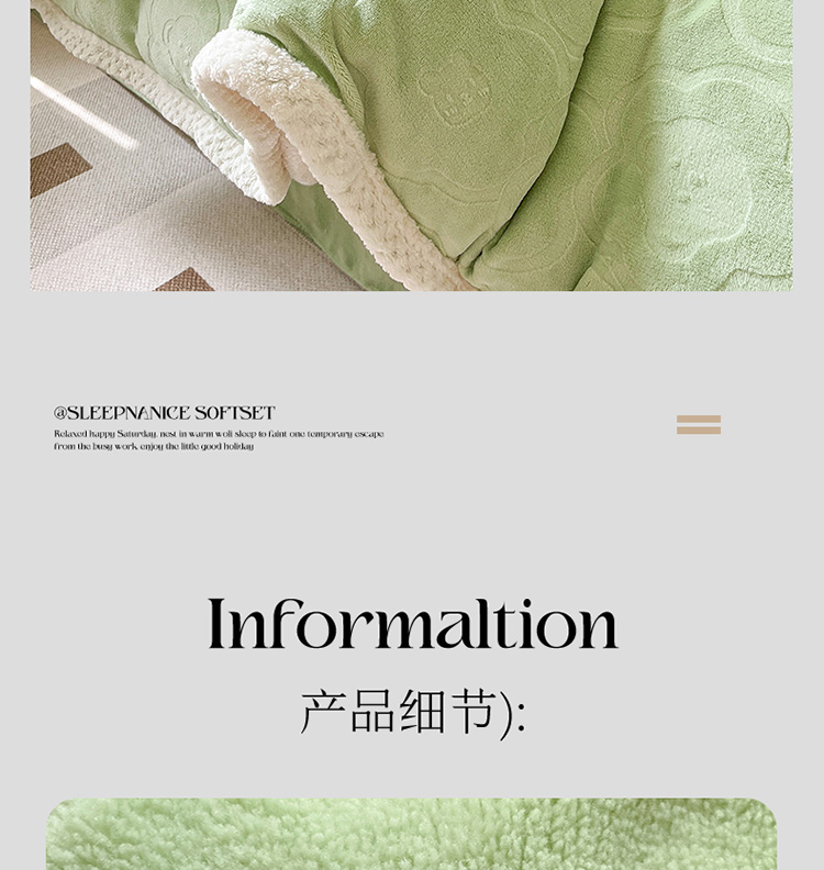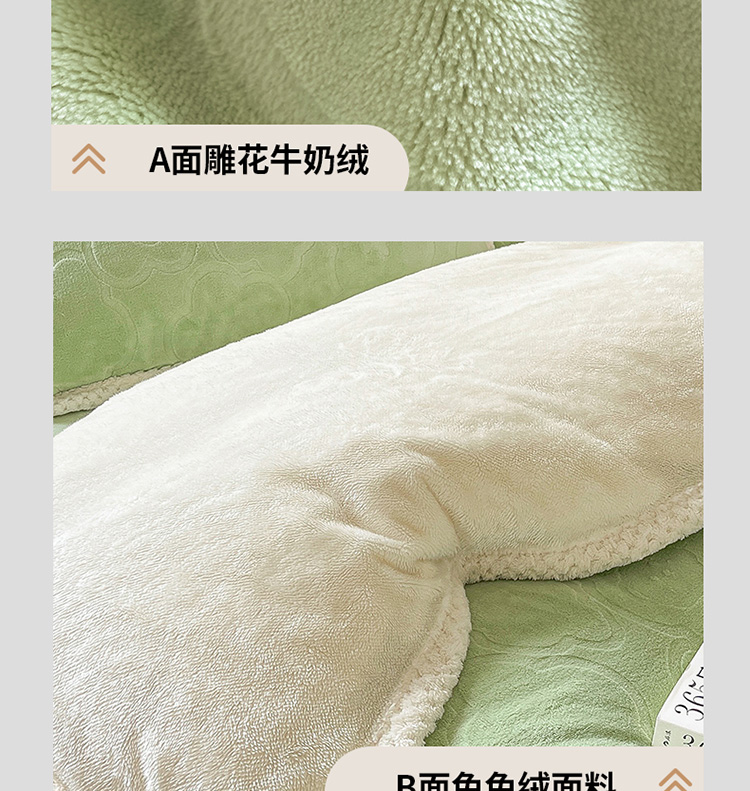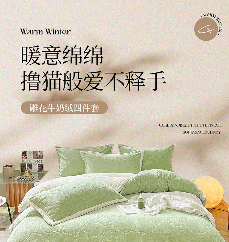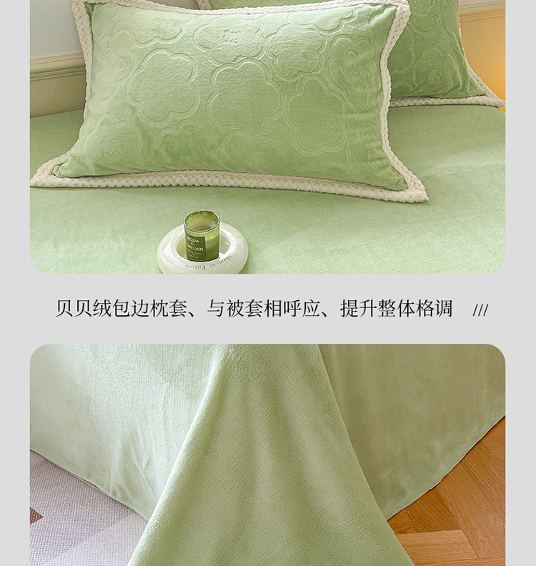 商品名称:琪格格纺织 2023新品雕花牛奶绒VS兔兔绒四件套 雕花小熊-草绿