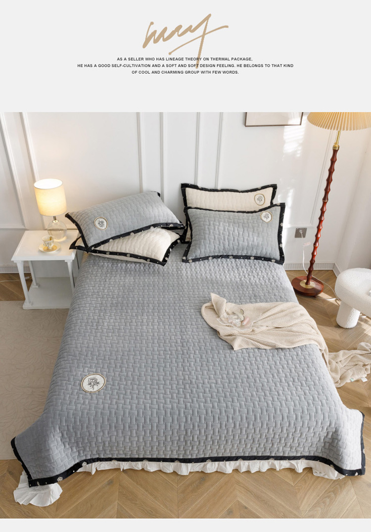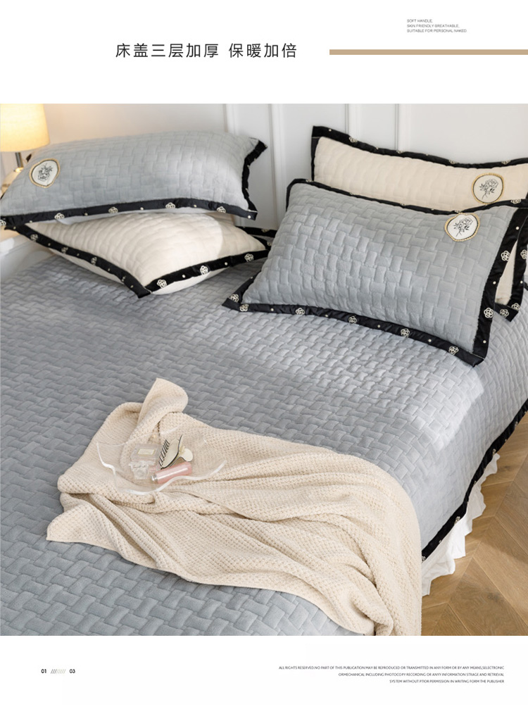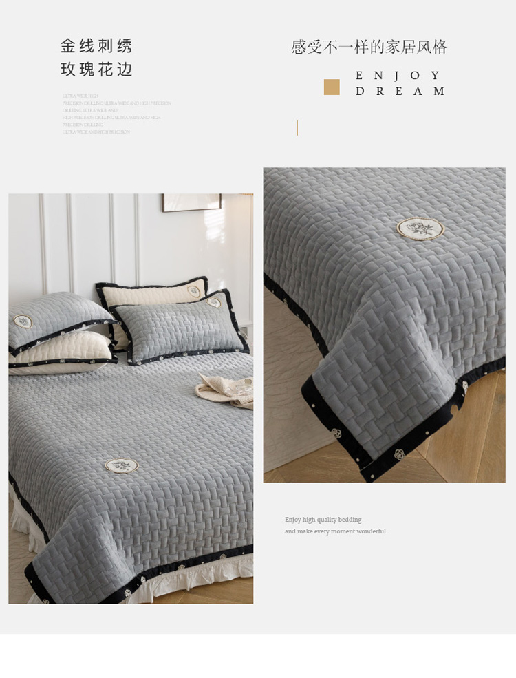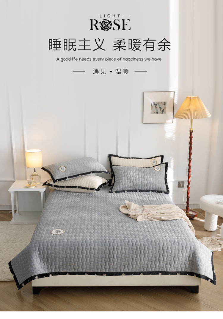 菊上家纺 2022新款牛奶绒单床盖-小香玫瑰 小香灰