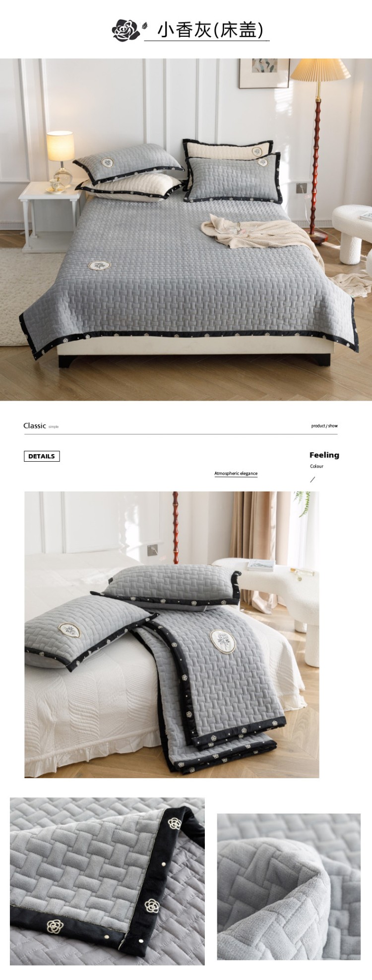 商品名称:菊上家纺 2022新款牛奶绒单床盖-小香玫瑰 小香灰