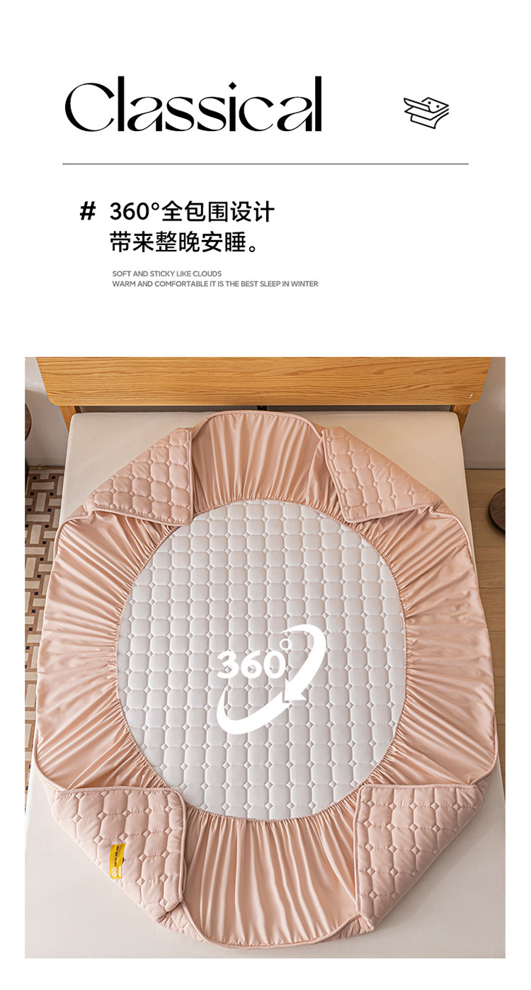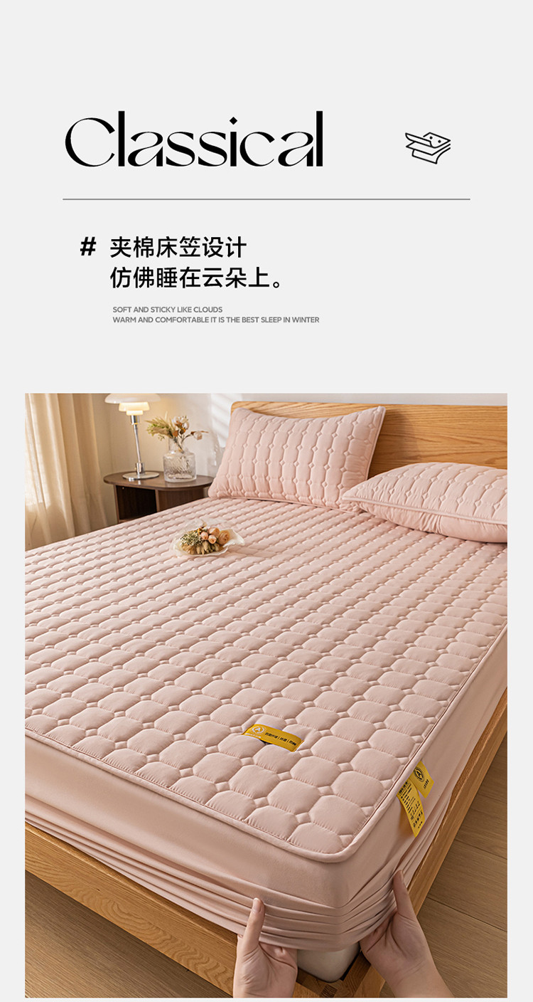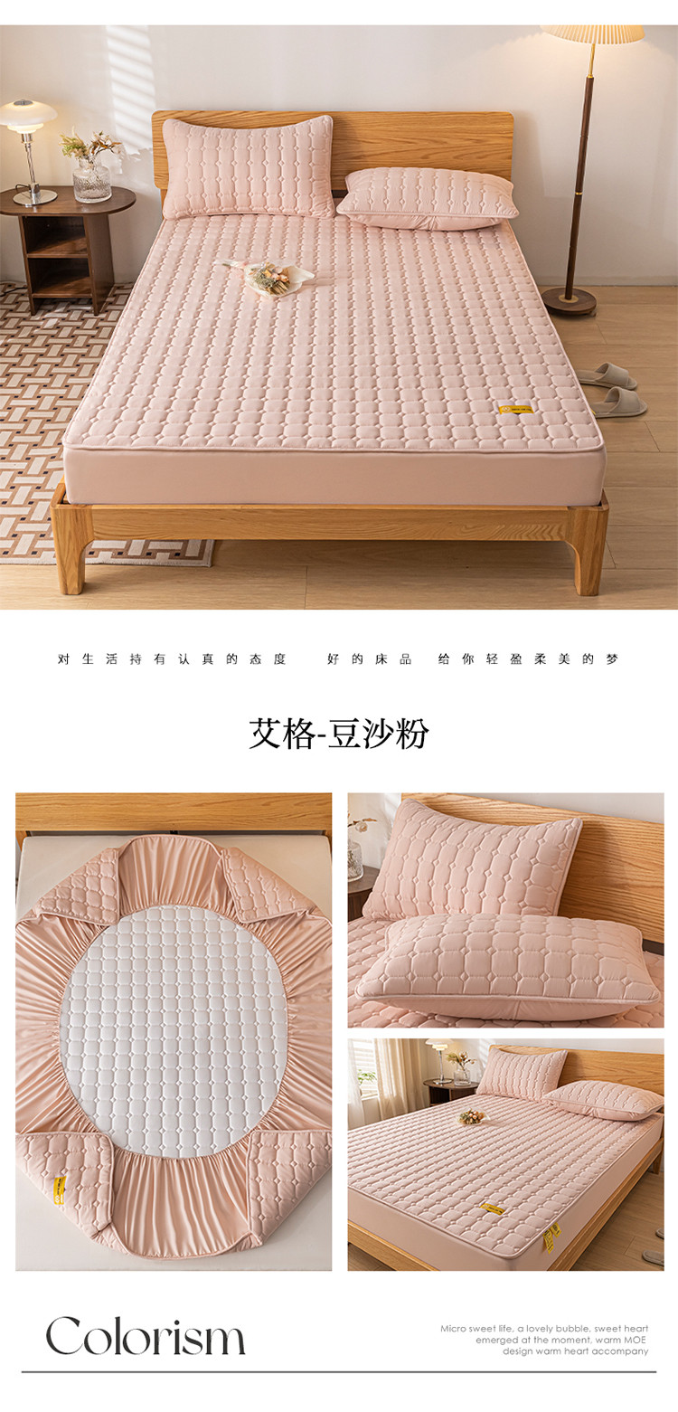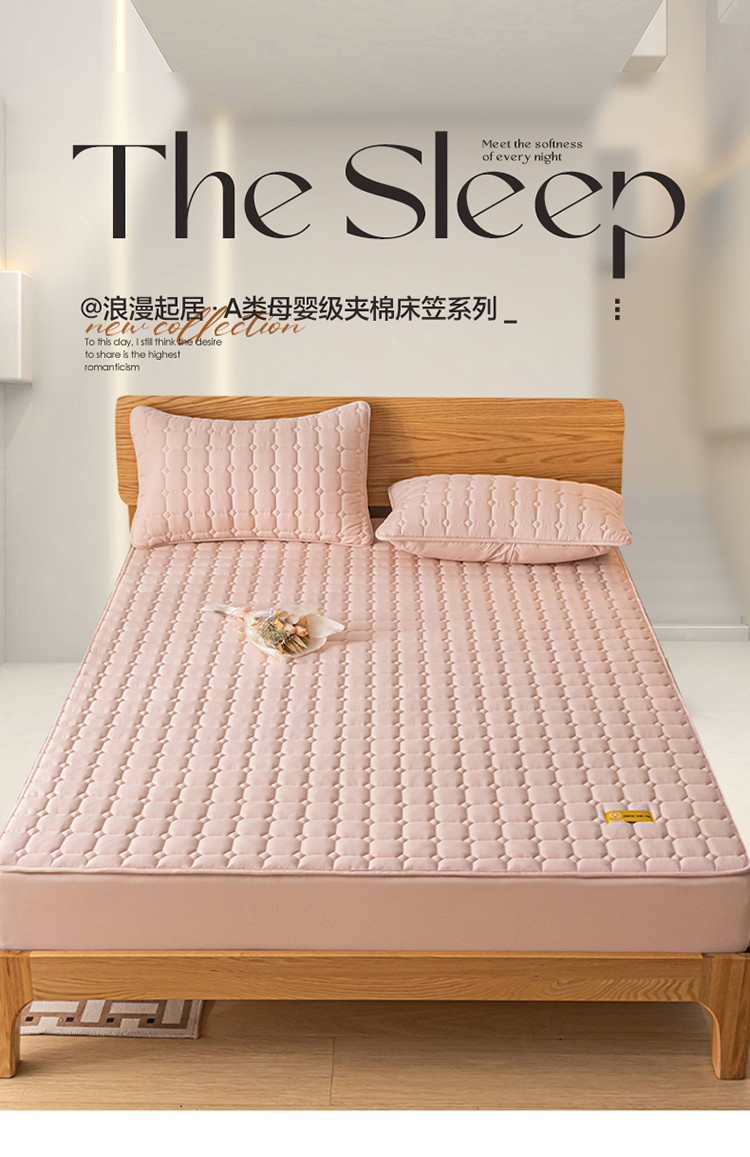 芬晴家纺 2023新款A类母婴级夹棉床笠系列 艾格-豆沙粉