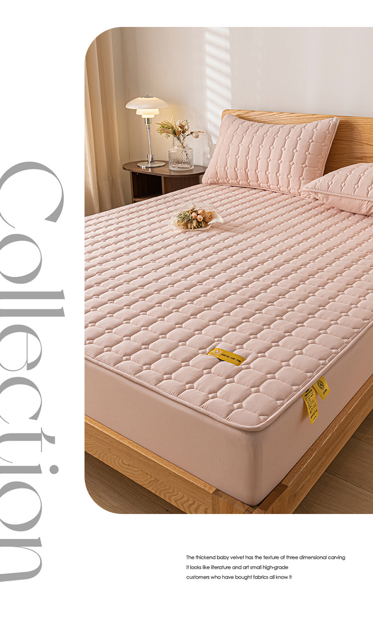 • 91家纺网 家纺一手货源 找家纺 芬晴家纺 2023新款A类母婴级夹棉床笠系列 艾格-豆沙粉