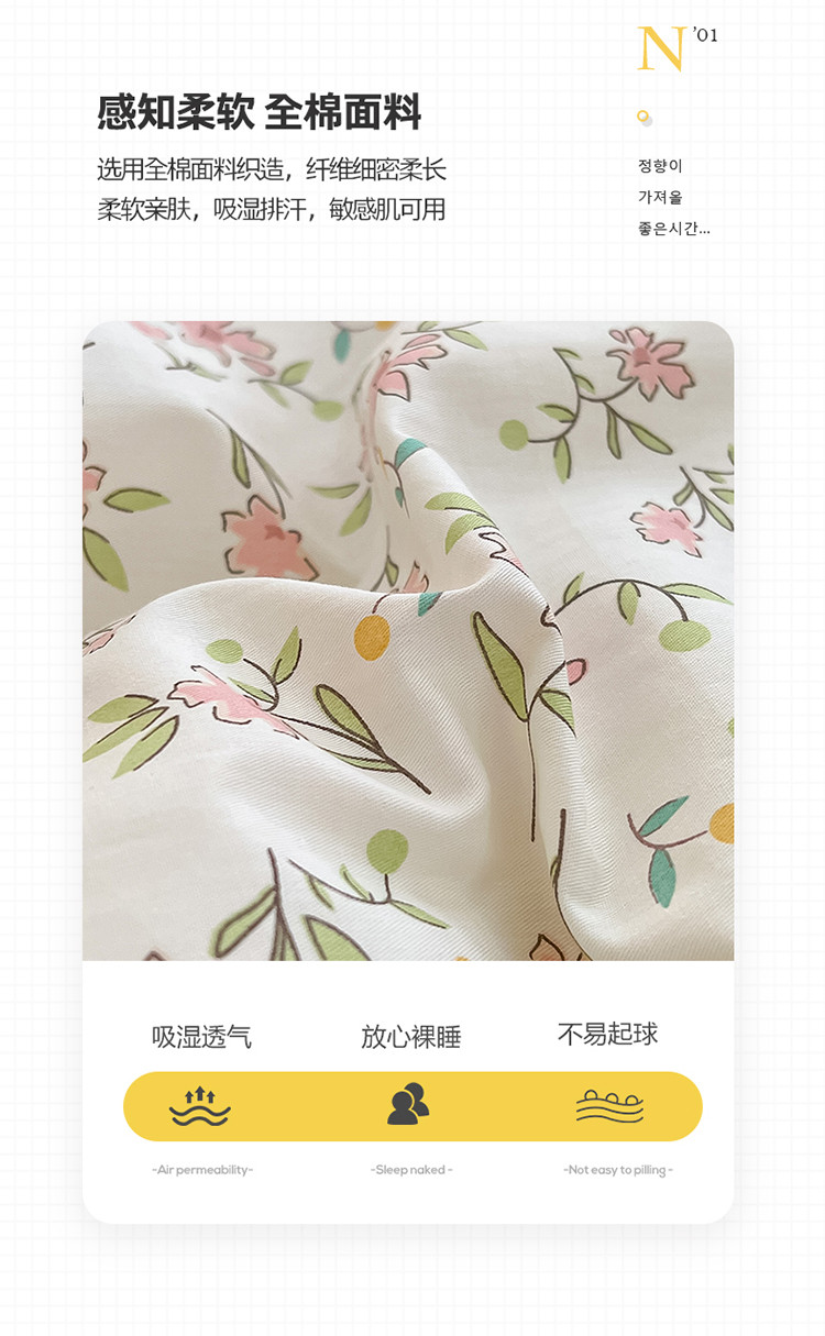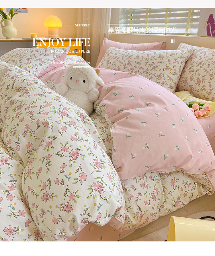 商品名称:小懒猪 2023新款春夏全棉小清新系列四件套 浪漫