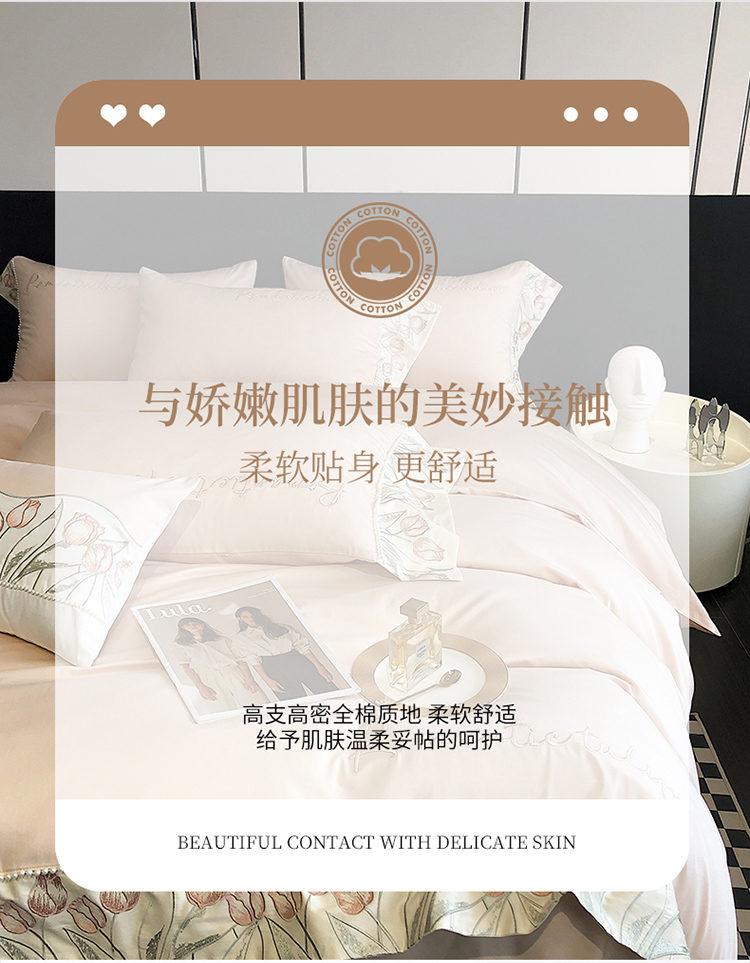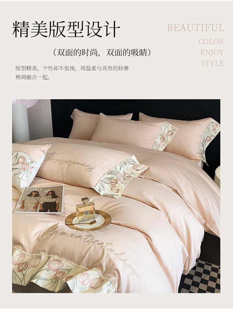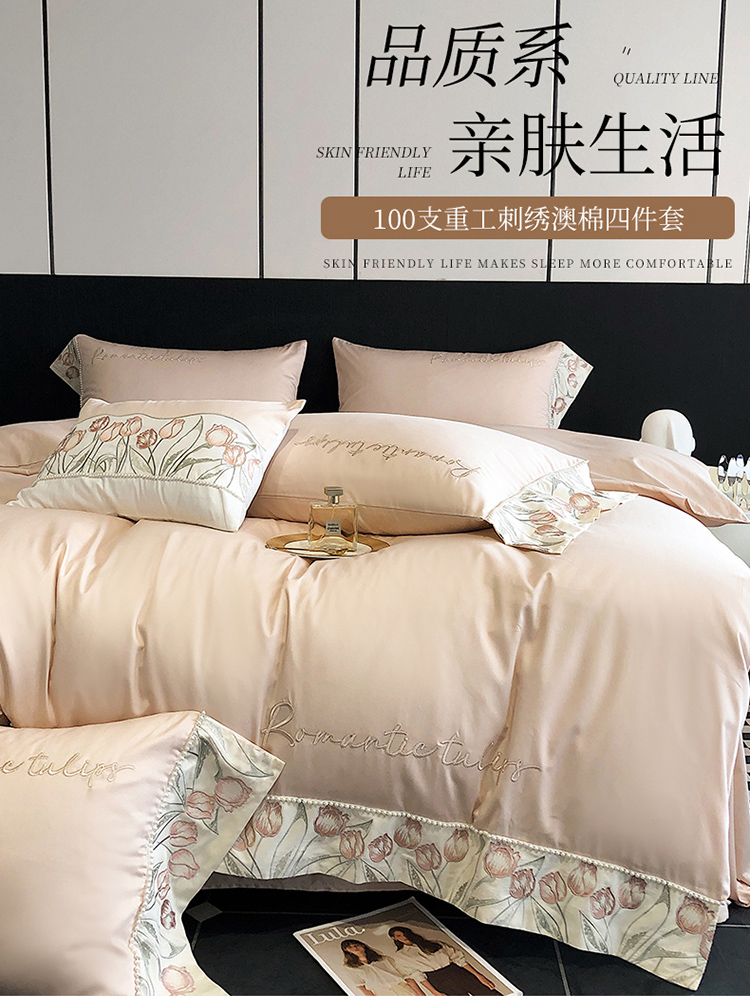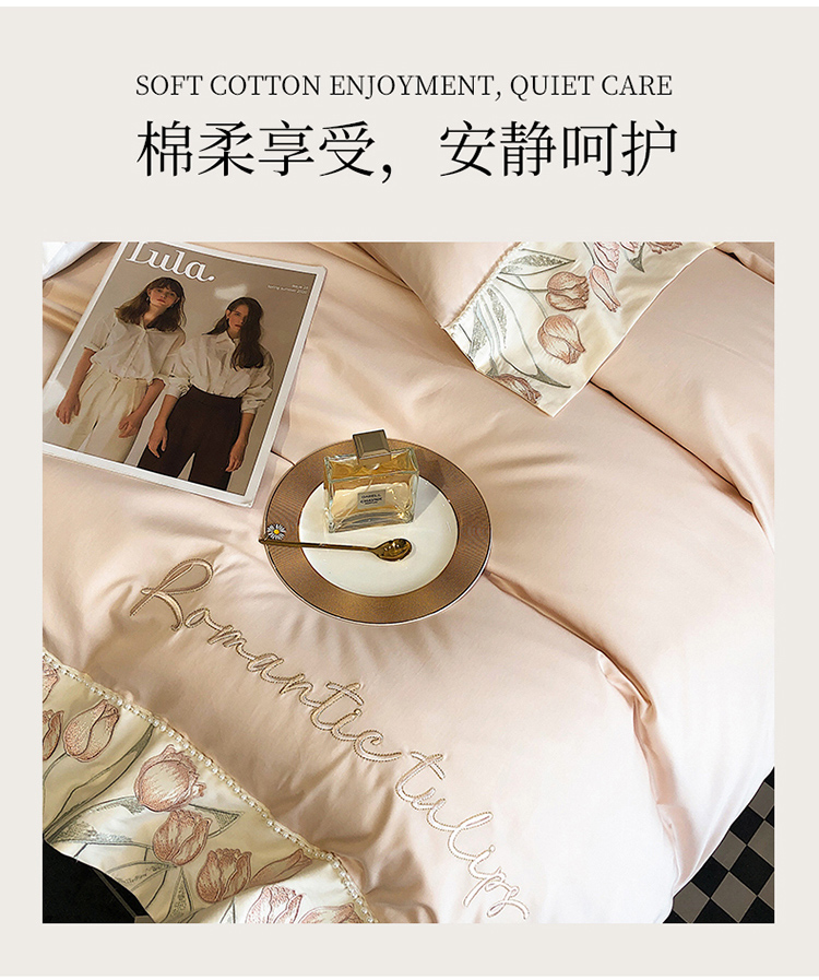 商品名称:2023新款爱缦蔷薇系列100支澳棉四件套 沐粉
