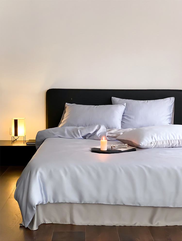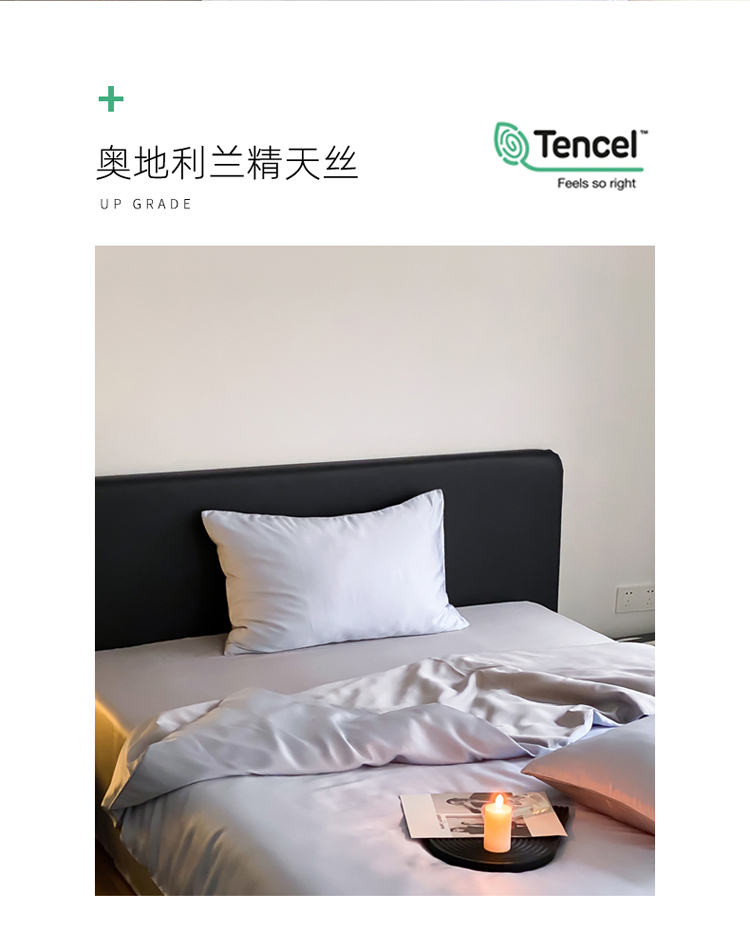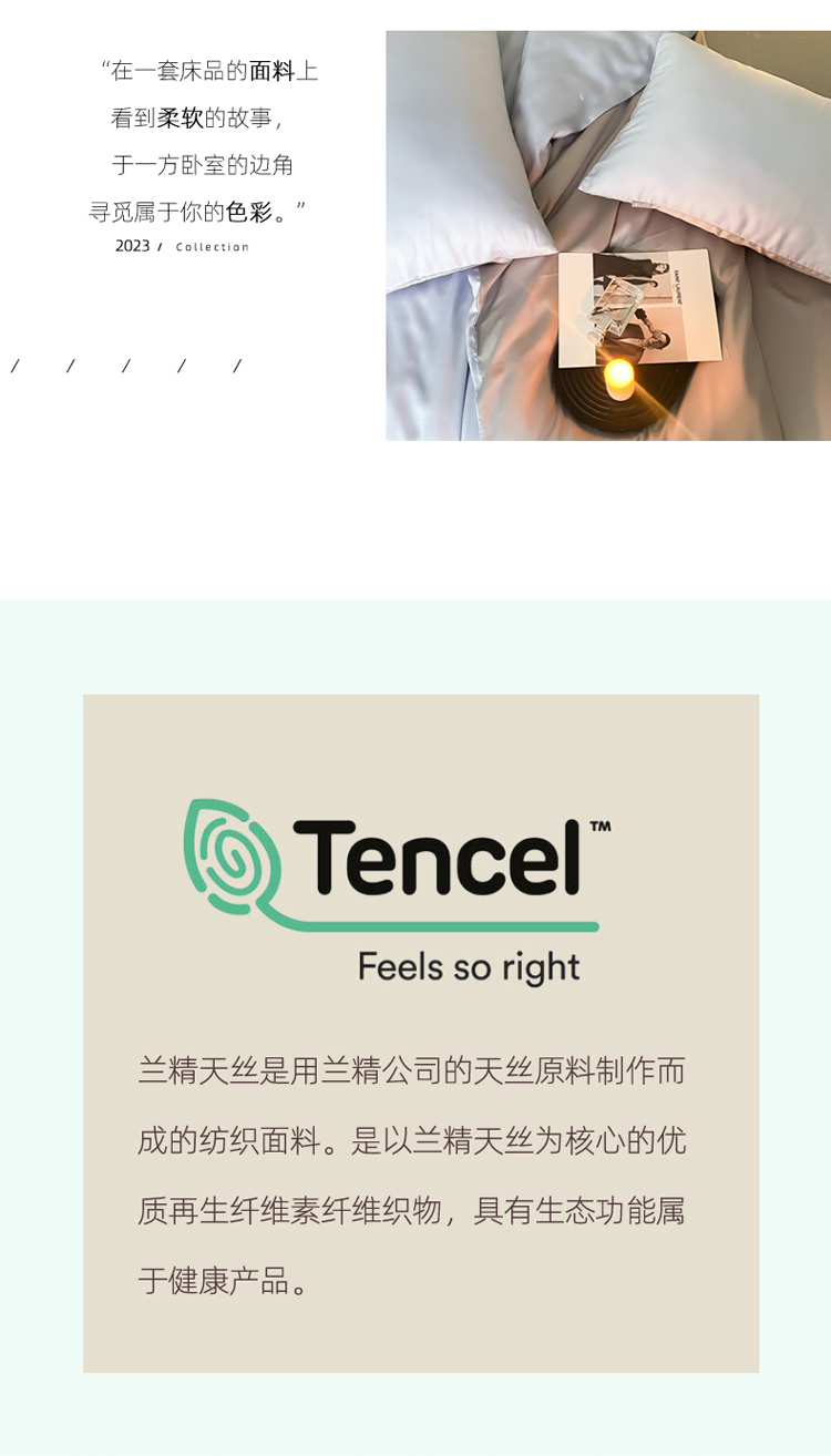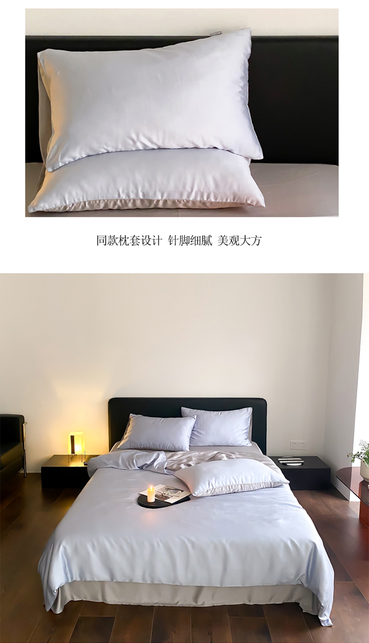 商品名称:时亿2023新款兰精60天丝素色双拼四件套 浅蓝灰