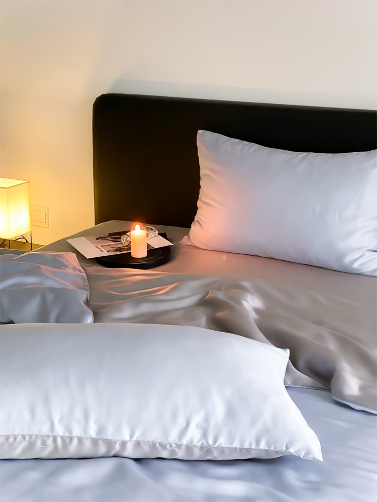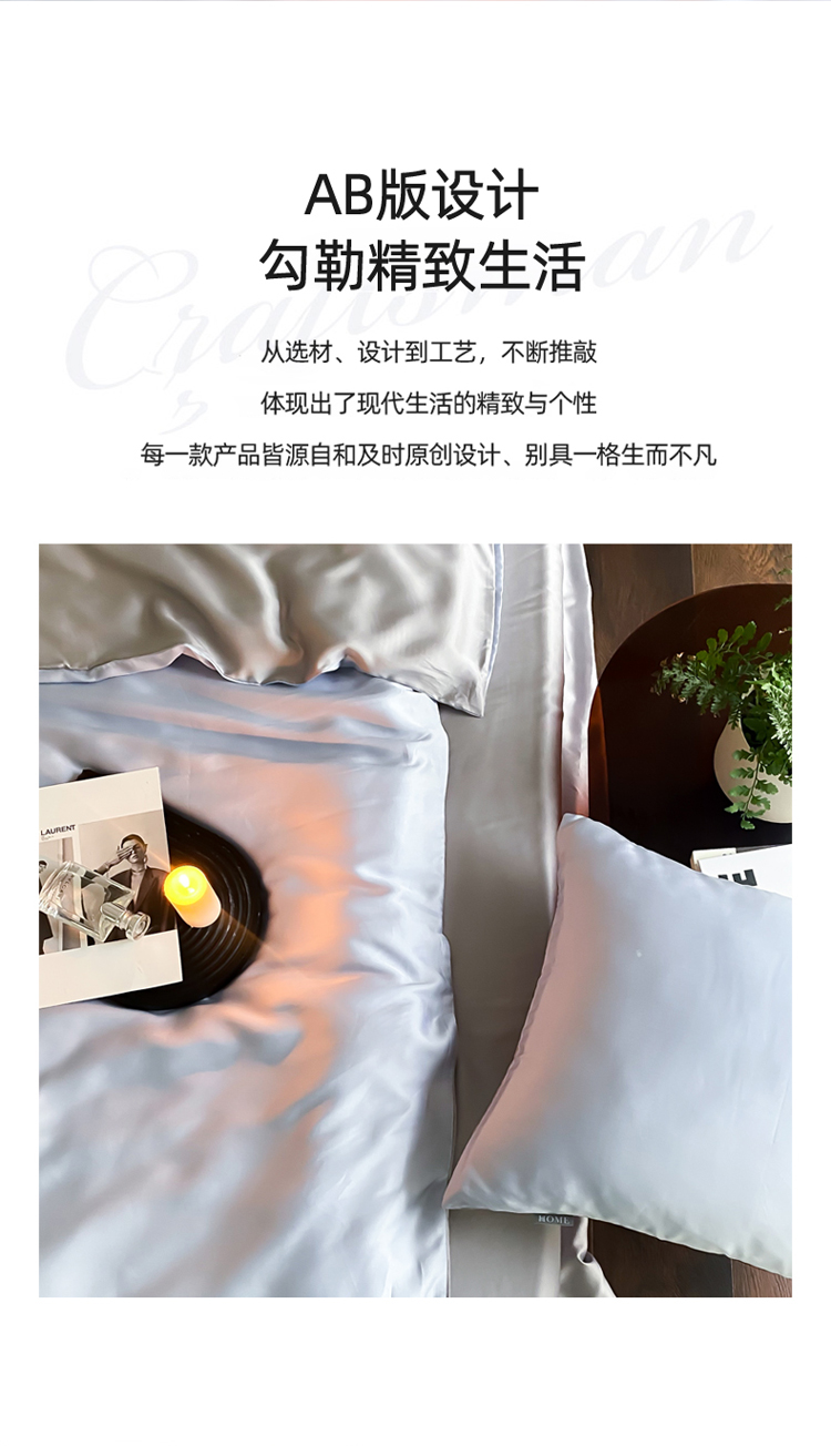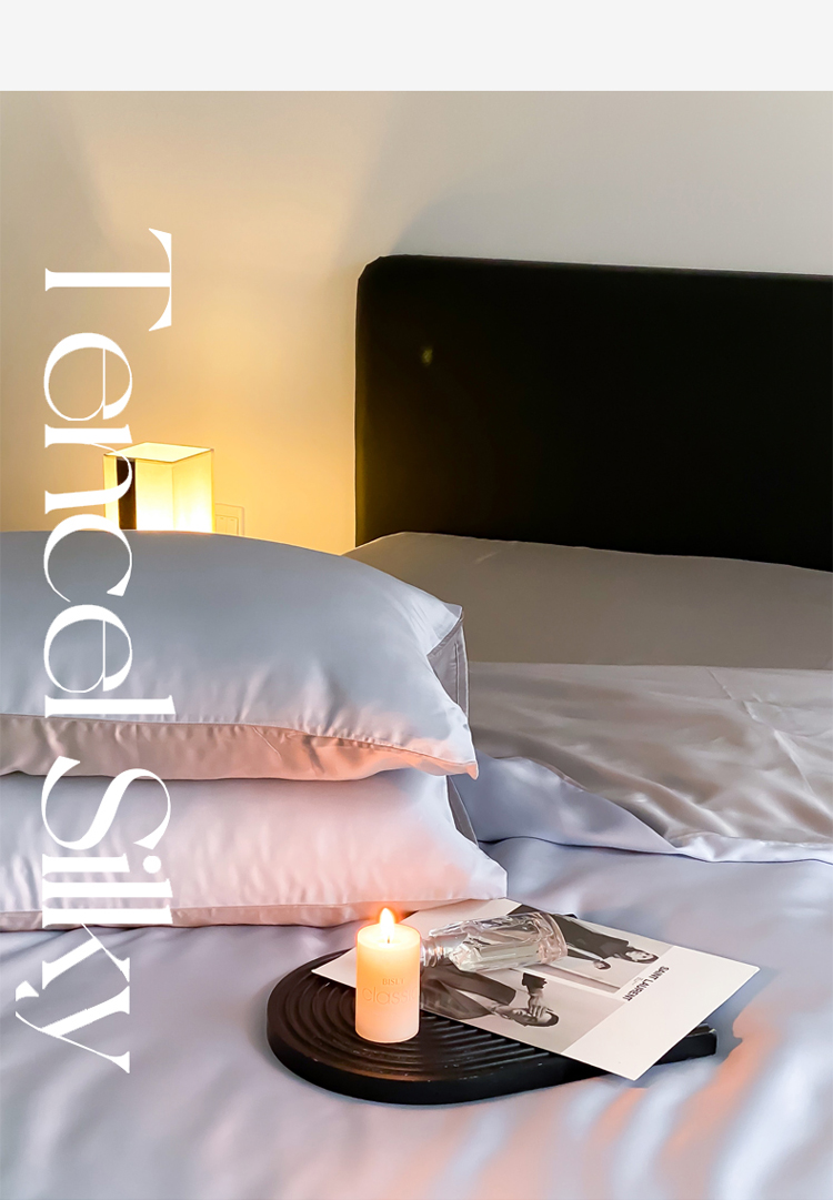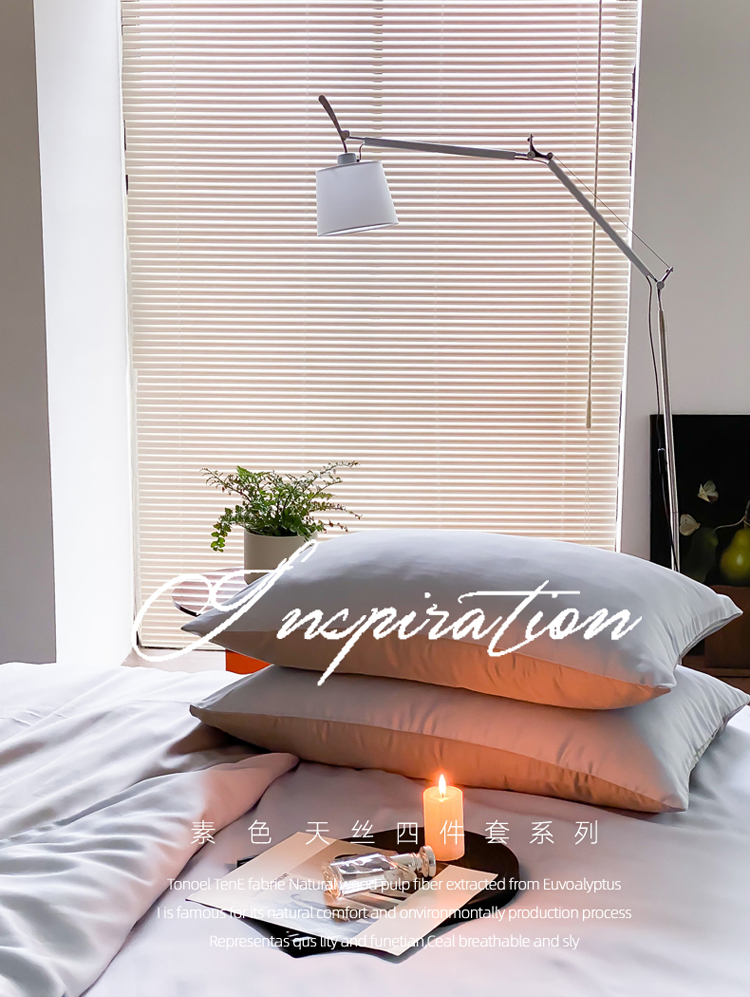 商品名称:时亿2023新款兰精60天丝素色双拼四件套 浅蓝灰