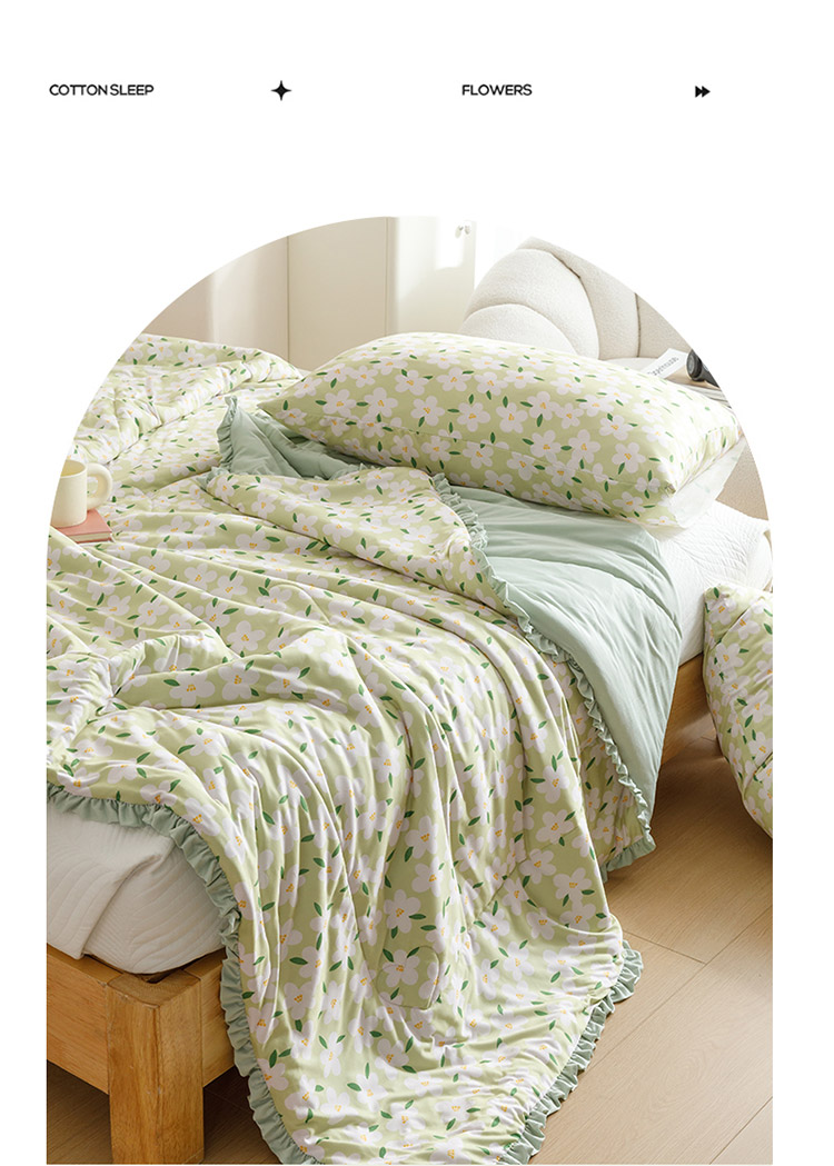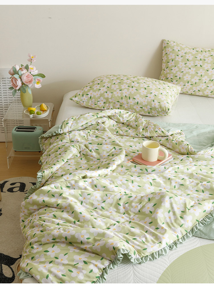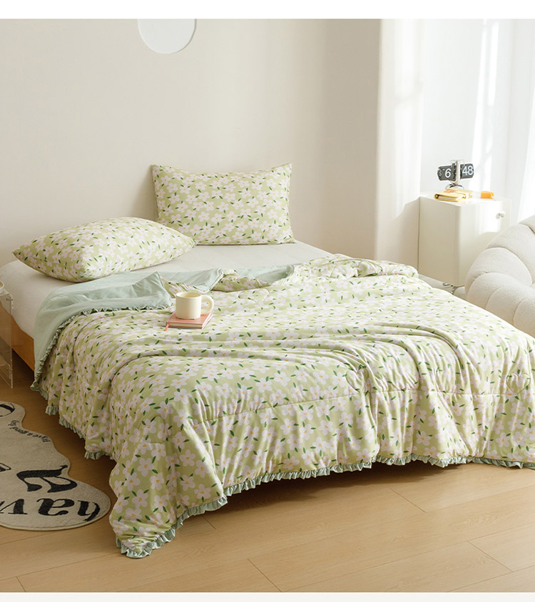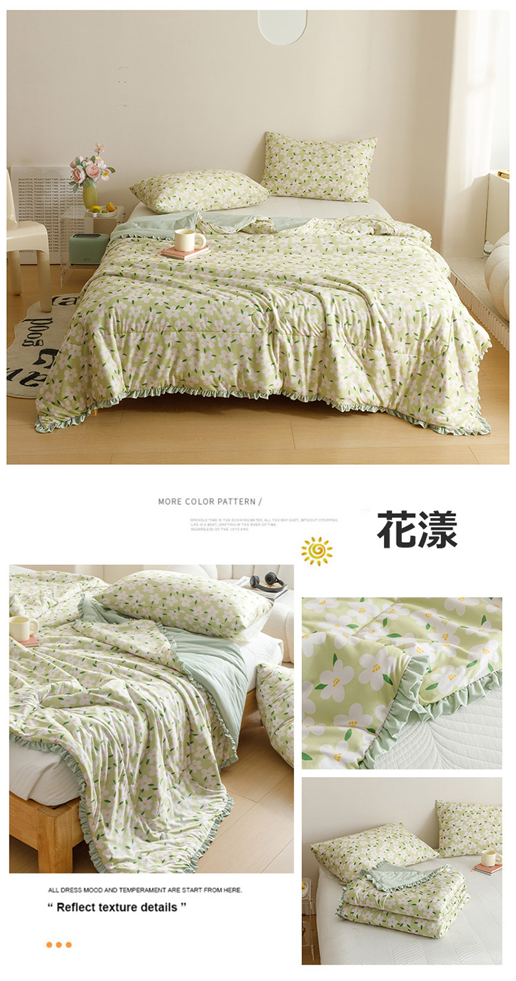 (总)有货 2023新款小清新花边韩版水洗棉麻豆豆夏被简约复古风,枫情,格格,绿野,绿意,南风,暖心,森林,盛开,太空,微笑,向阳花,小鹿,枝丫